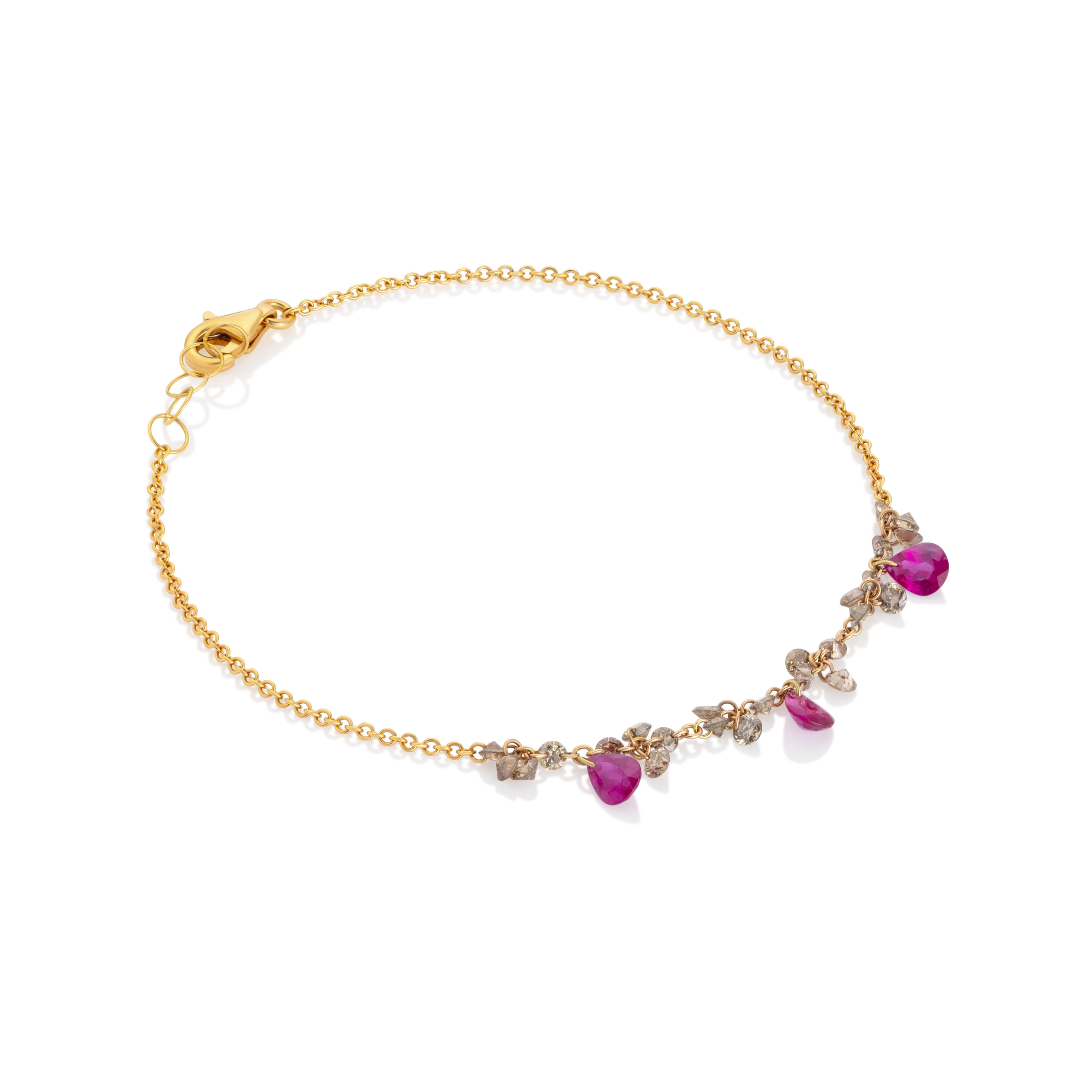 Bracciale in oro rosa 18KT gr 1,42 con diamanti brown naturali ct 0,96 (0,04 punti l'uno) e rubini naturali taglio goccia ct 0,81.