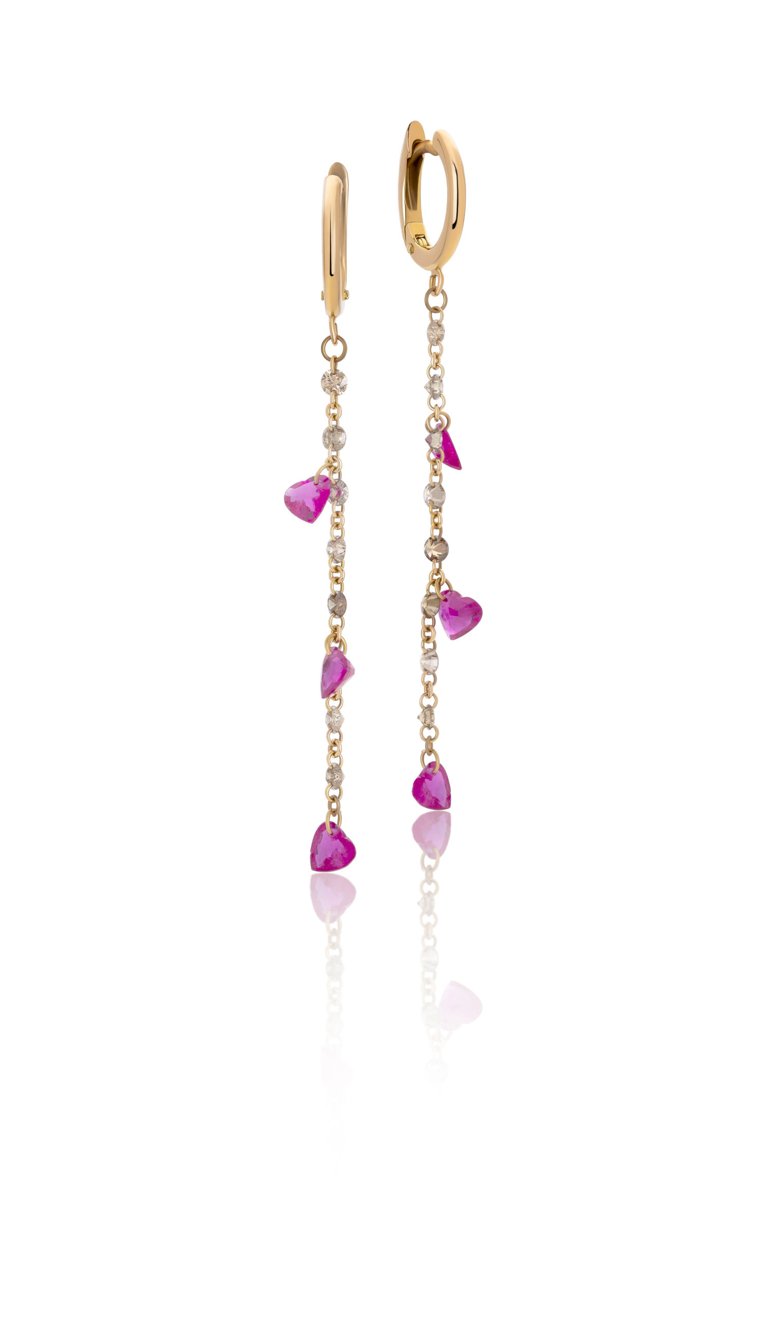 Orecchini in oro rosa 18KT gr 2,28 con diamanti brown naturali ct 0,64 e rubini naturali taglio cuore ct 1,37.