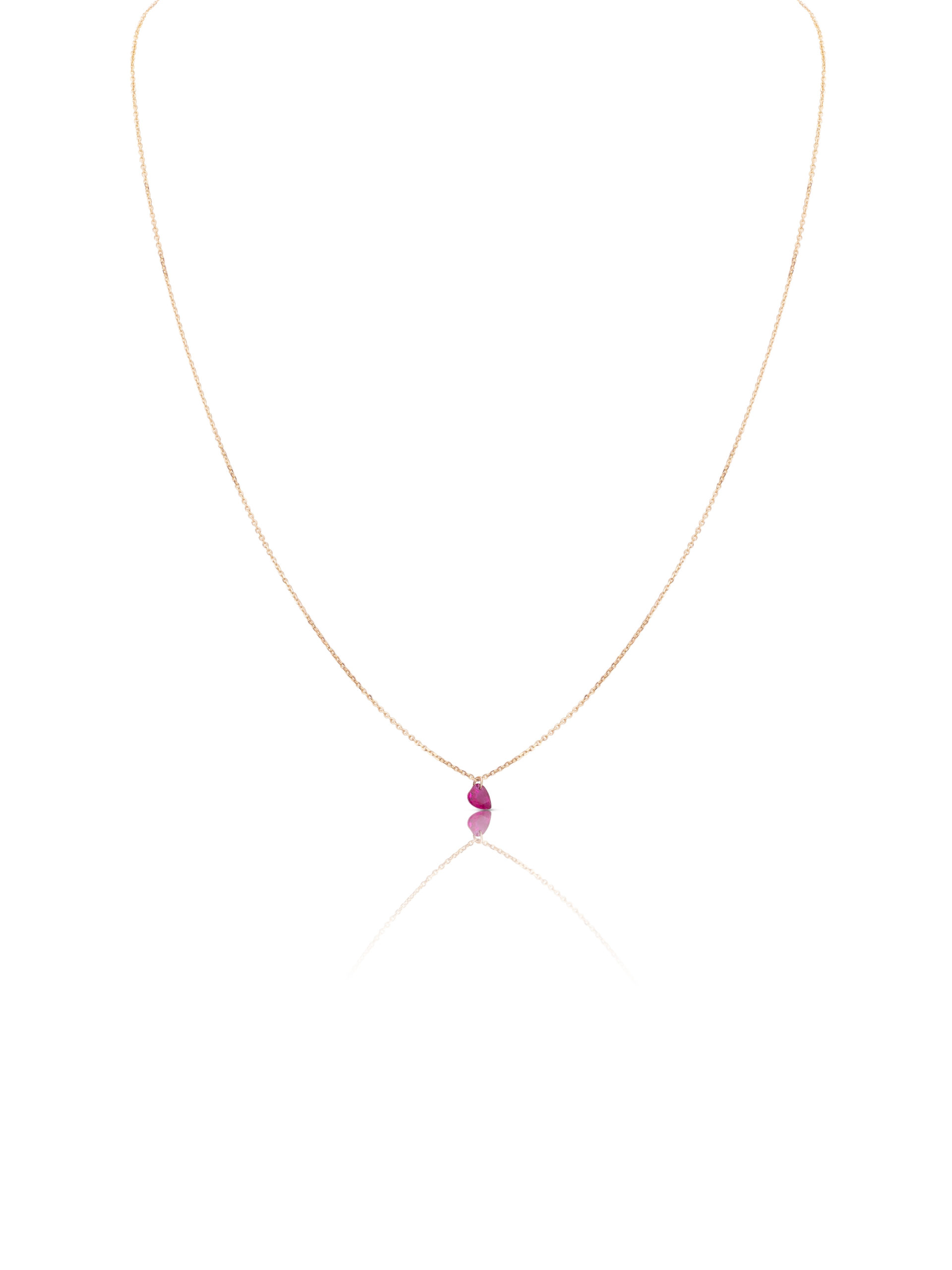 Collana in oro rosa 18KT gr 1,00 con rubino naturale taglio cuore ct 0,26.