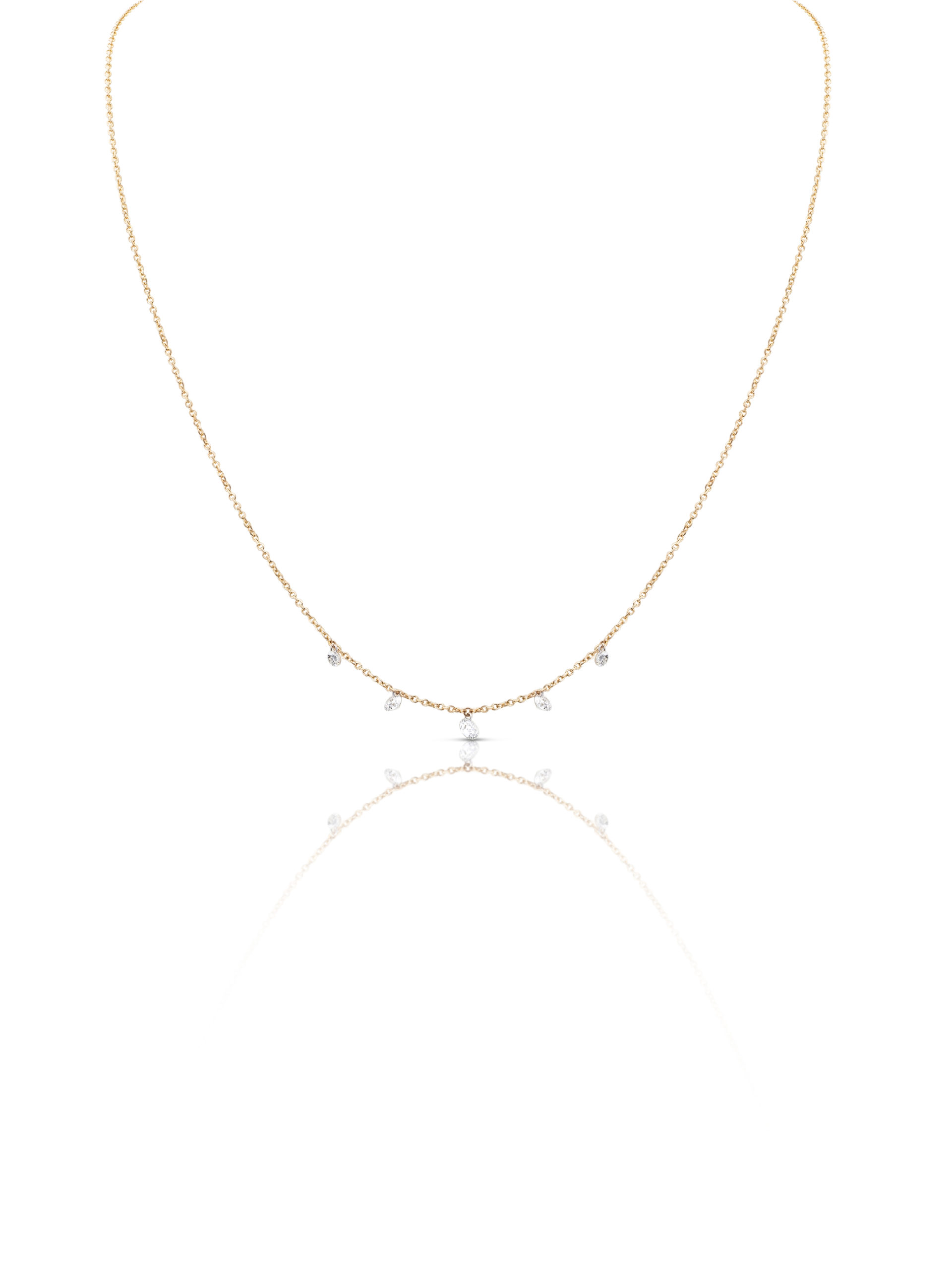 Necklace in 18KT rose gold gr 1.50 with natural white diamonds ct 0.45 (2×0.05 / 2×0.10/ 0.15) . Color F Purity SI. Available in all weights.