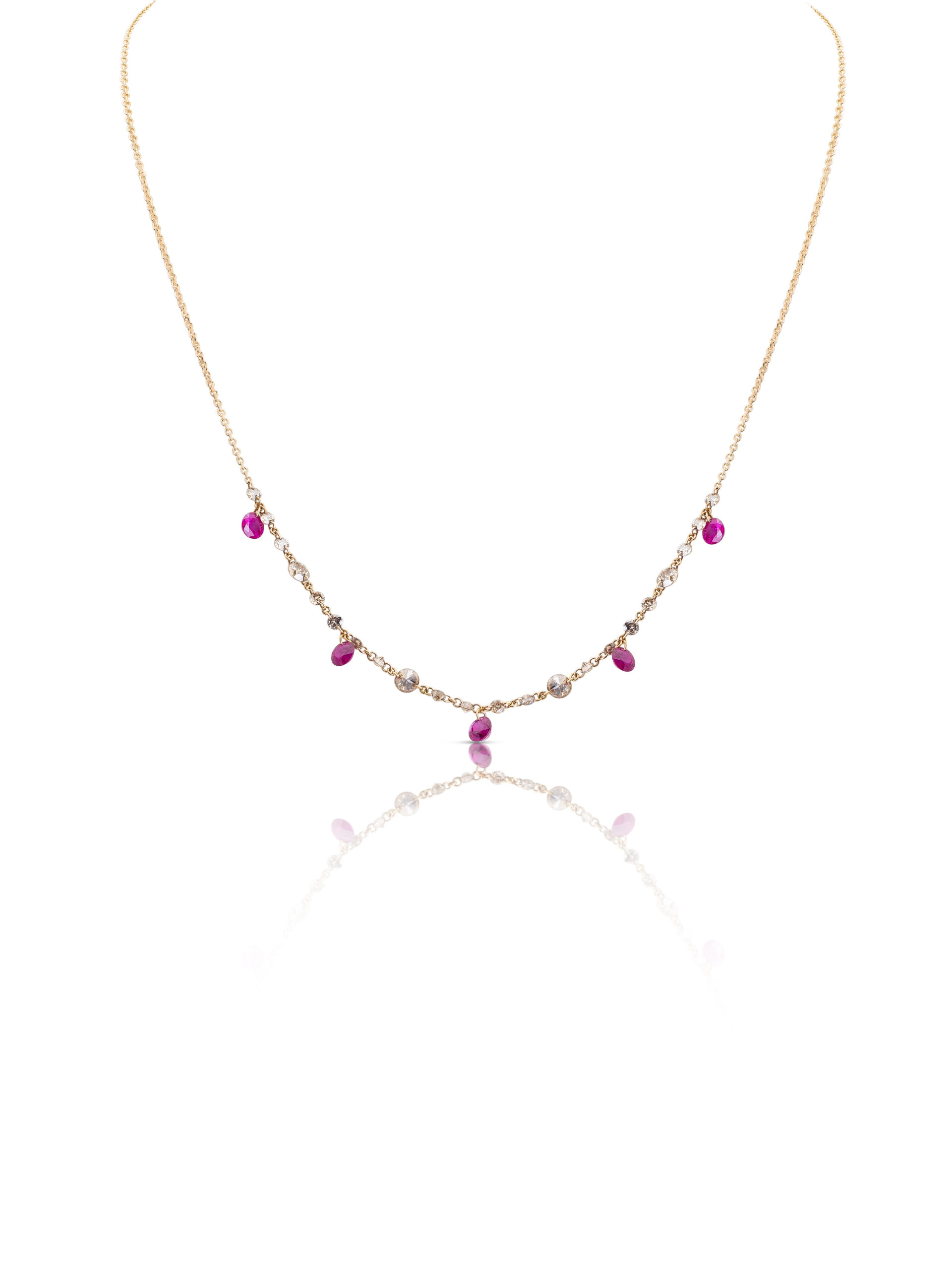 Collana in oro rosa 18KT gr 1,95 con diamanti brown naturali ct 1,41 e rubini naturali ct 1,45
