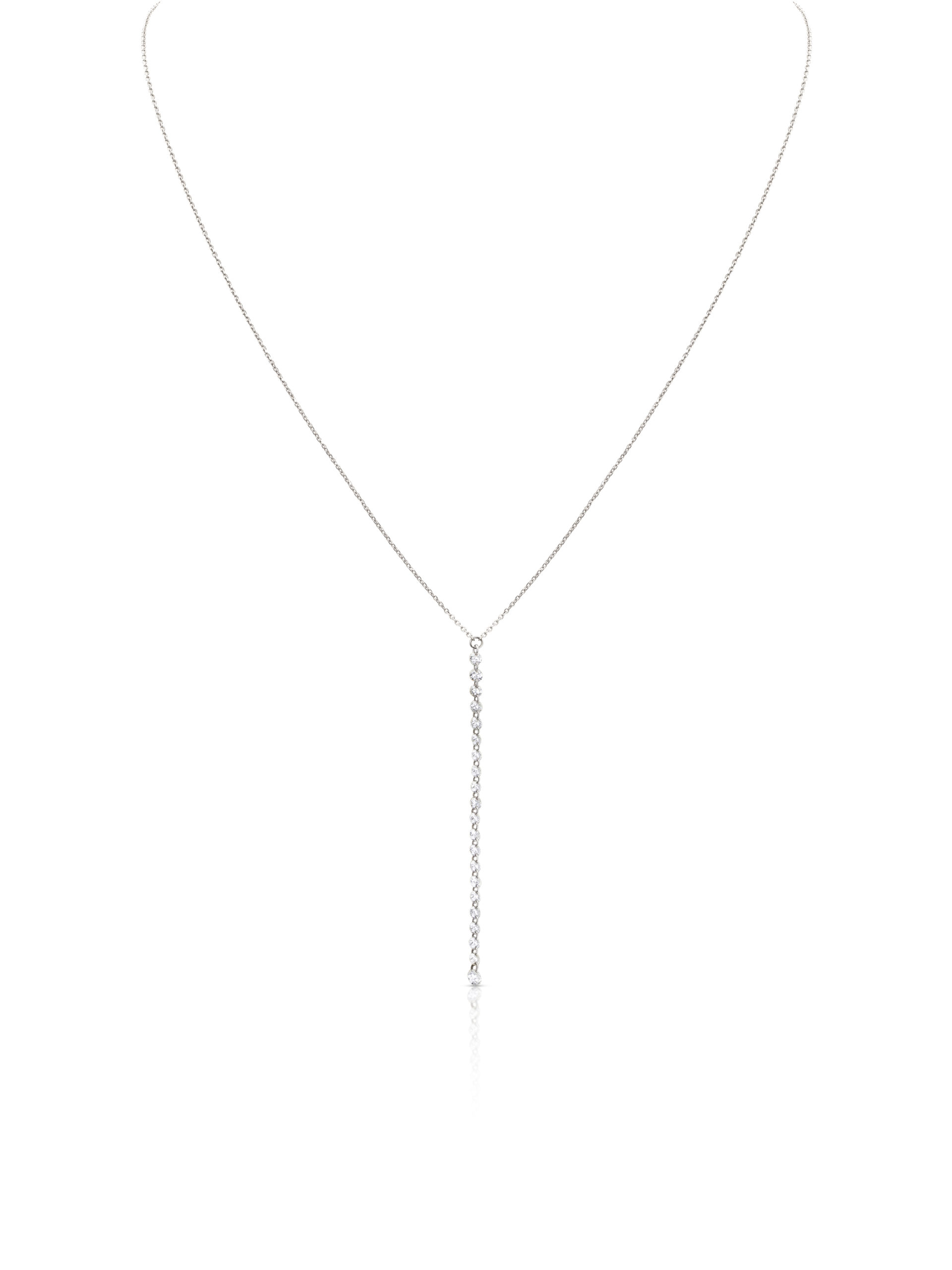 Collana in oro bianco 18KT gr 1,42 con diamanti naturali ct 0,45, 20 diamanti da 2 punti l'uno e 1 da 5 punti. Colore F Purezza SI. Disponibile in tutte le carature.