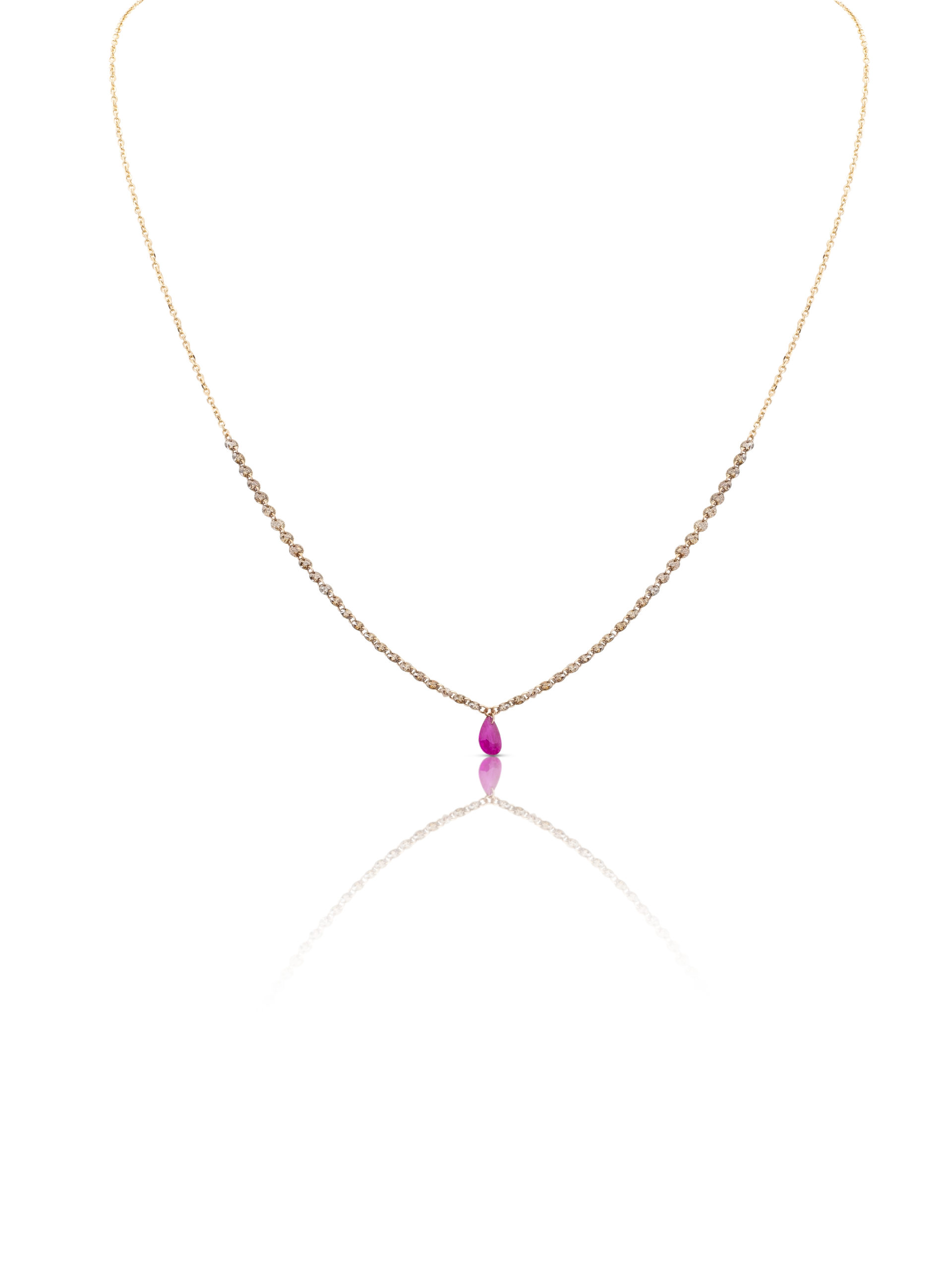 Collana in oro rosa 18KT gr 1,40 con diamanti brown naturali ct 1,44 e rubino naturale taglio goccia ct 0,42