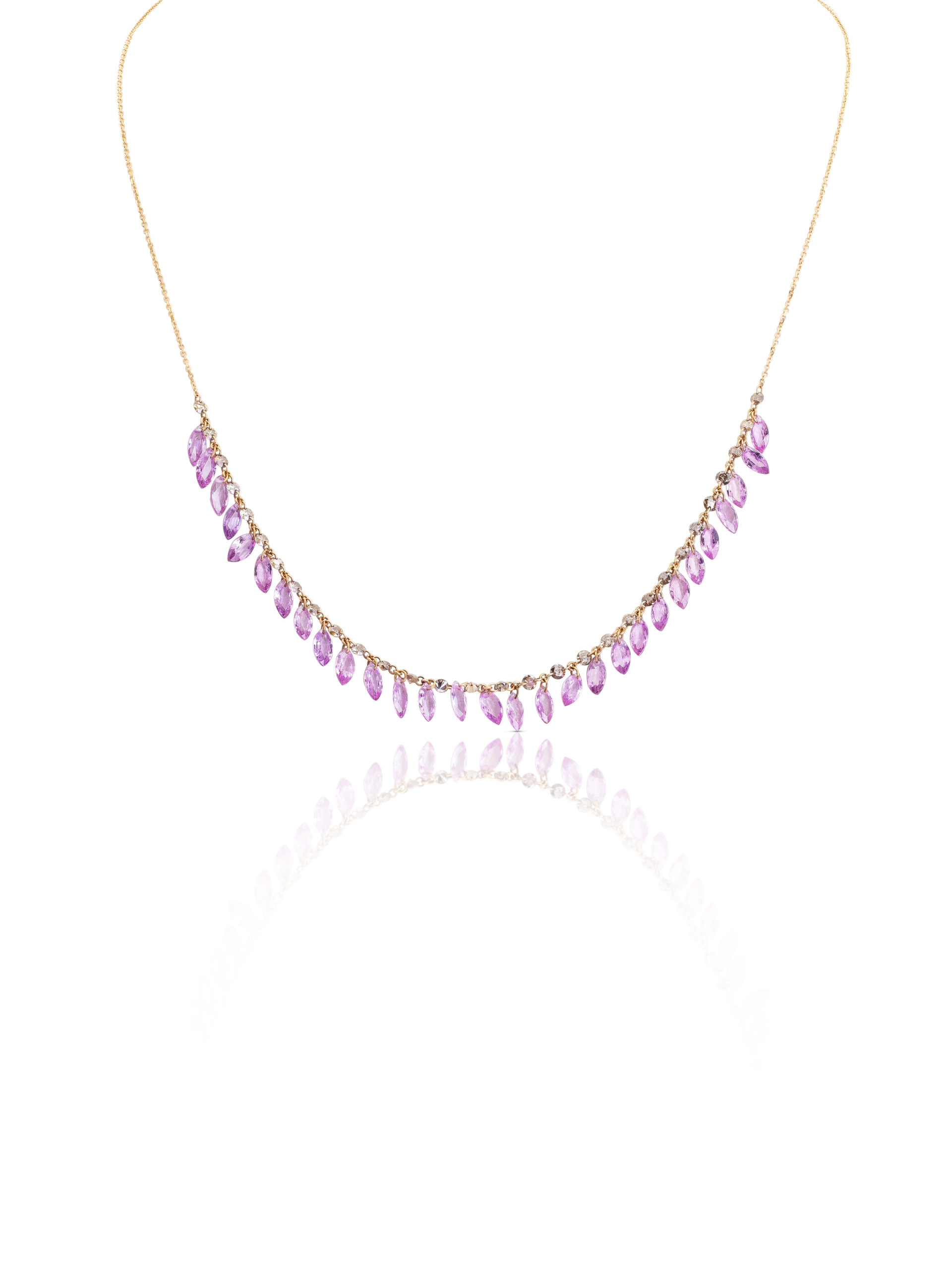 Collana in oro rosa 18KT gr 1,37 con diamanti brown naturali ct 1,20 e zaffiri rosa naturali taglio marquise ct 7,54
