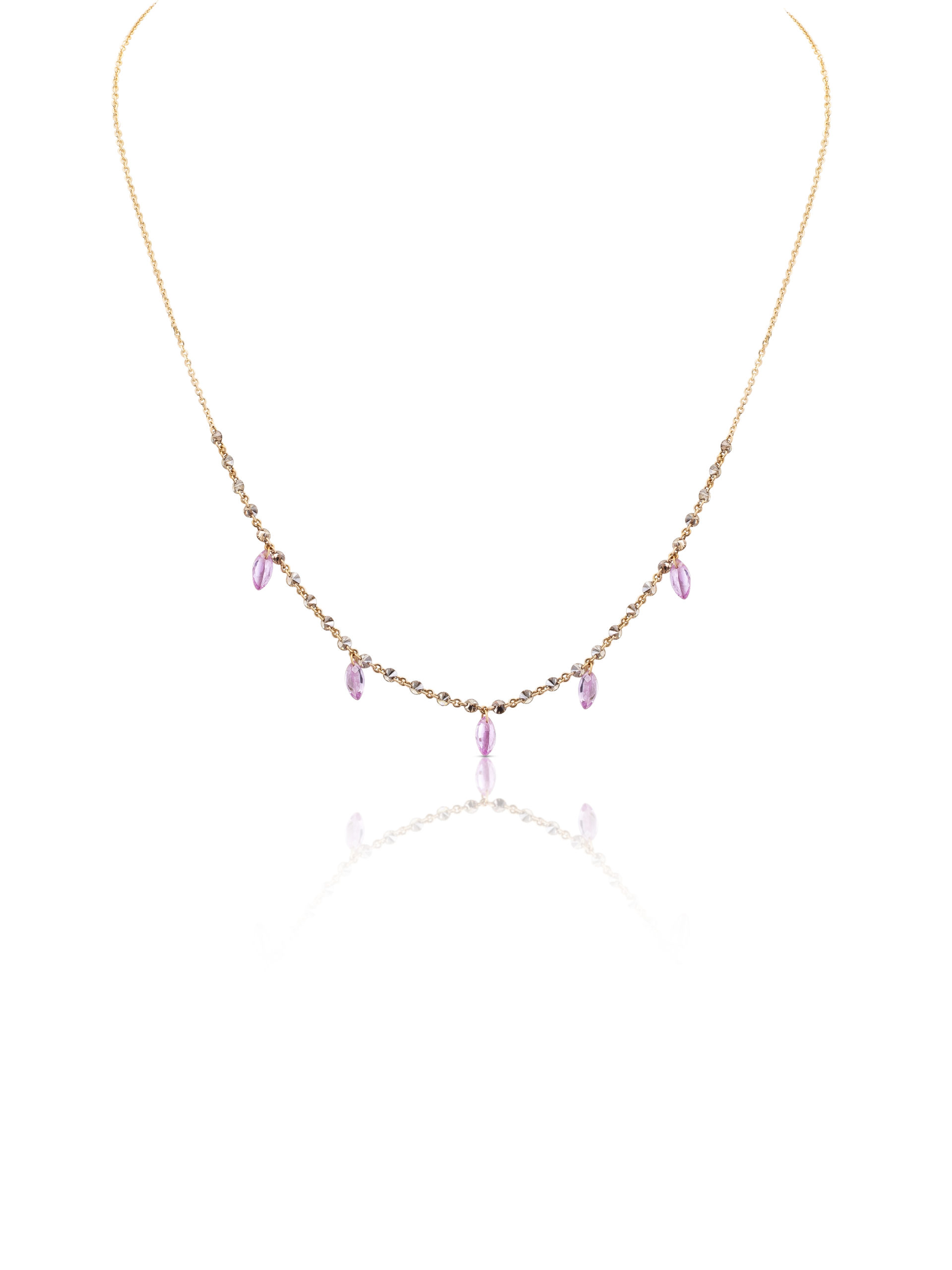 Collana in oro rosa 18KT gr 1,67 con diamanti brown naturali ct 1,20 e zaffiri rosa naturali taglio marquise ct 1,38