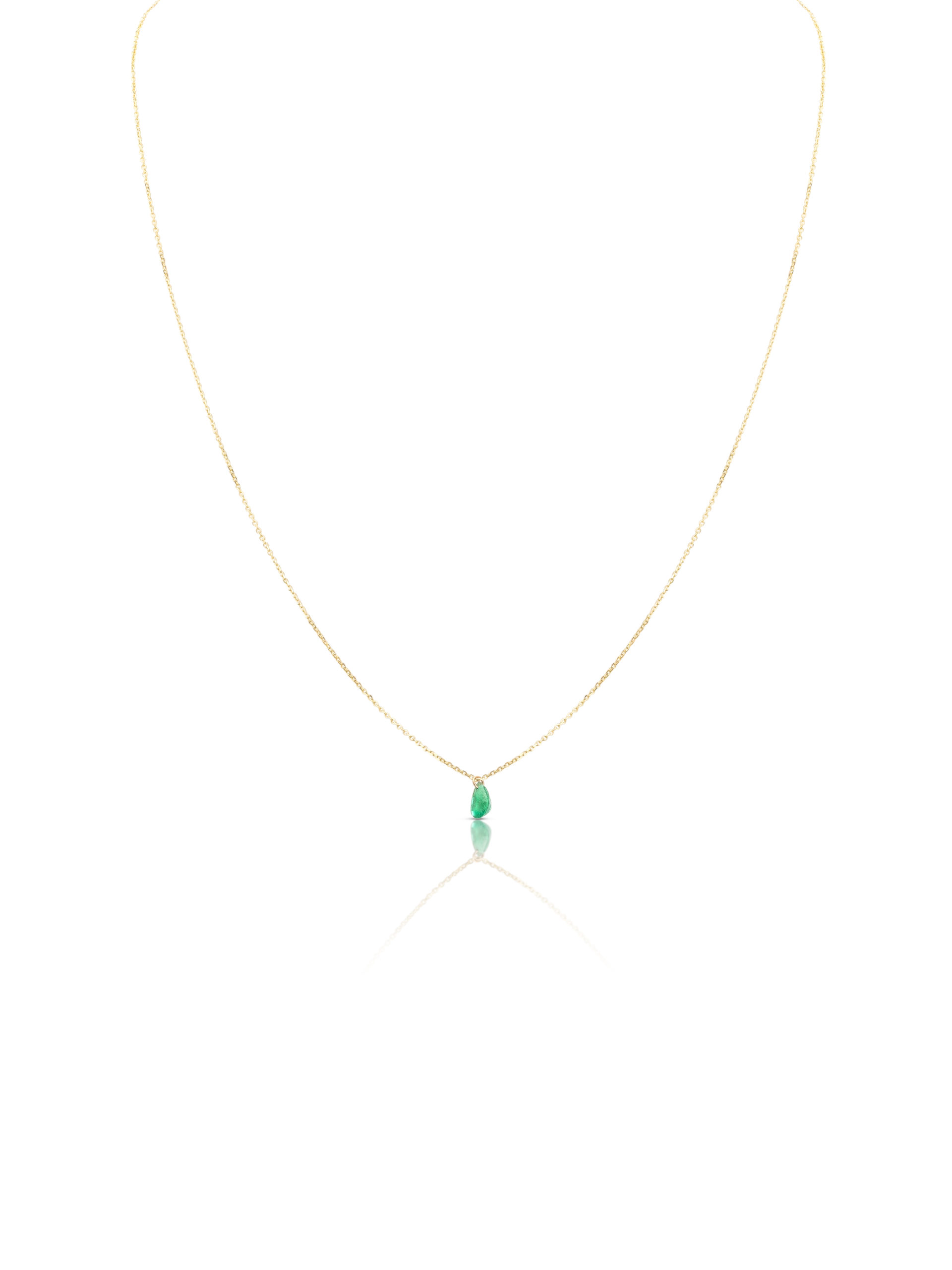 Collana in oro giallo 18KT gr 1 con smeraldo naturale taglio goccia ct 0,34. Disponibile in tutte le carature