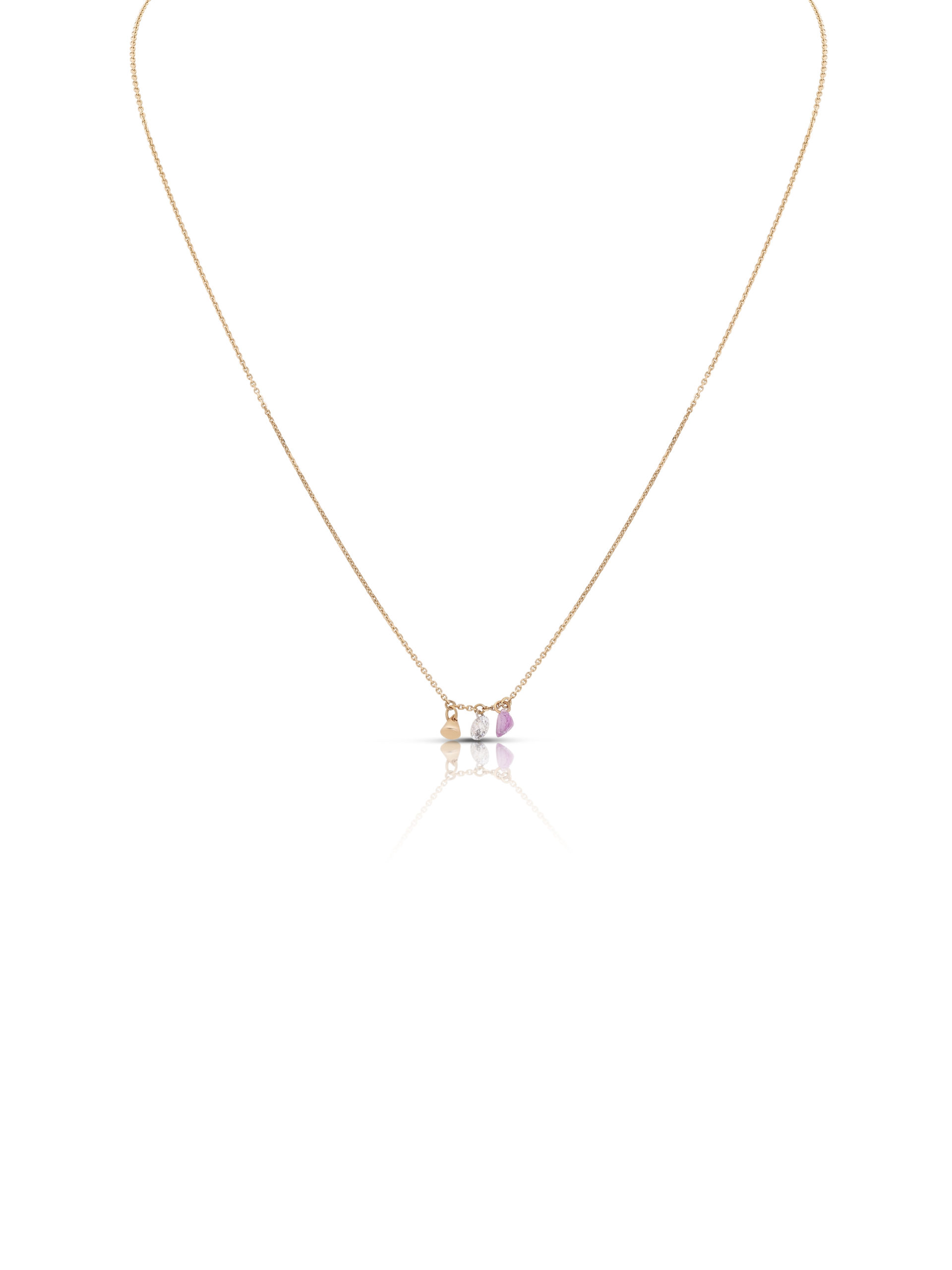 Collana in oro rosa 18KT gr 1,30 con diamante naturale ct 0,15 Colore F Purezza SI e zaffiro rosa naturale taglio cuore ct 0,26.