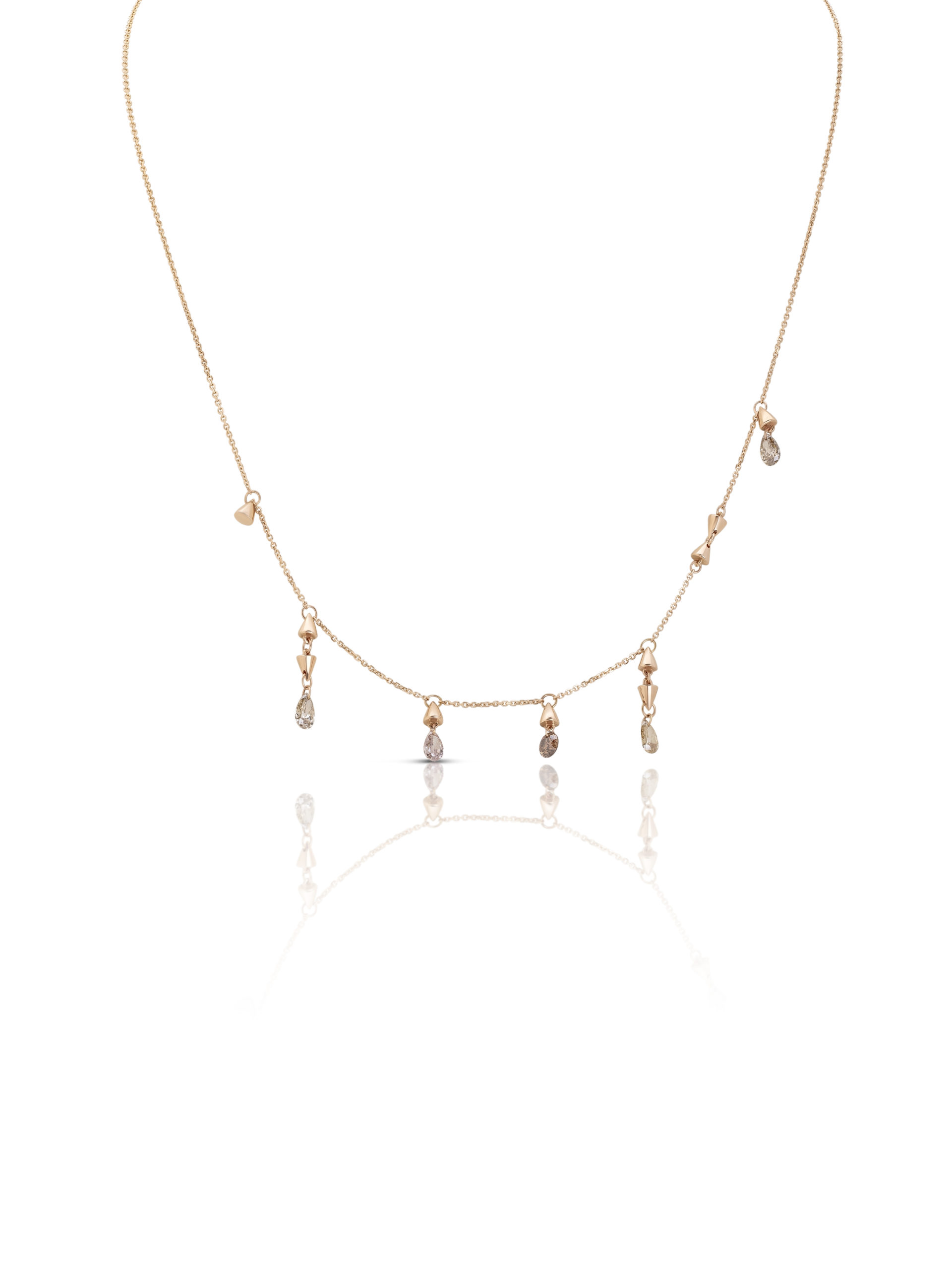 Collana in oro rosa 18KT gr 2,90 con diamanti brown naturali ct 0,15 e diamanti brown naturali taglio goccia ct 0,80 (0,20 punti). Disponibili in tutte le carature.