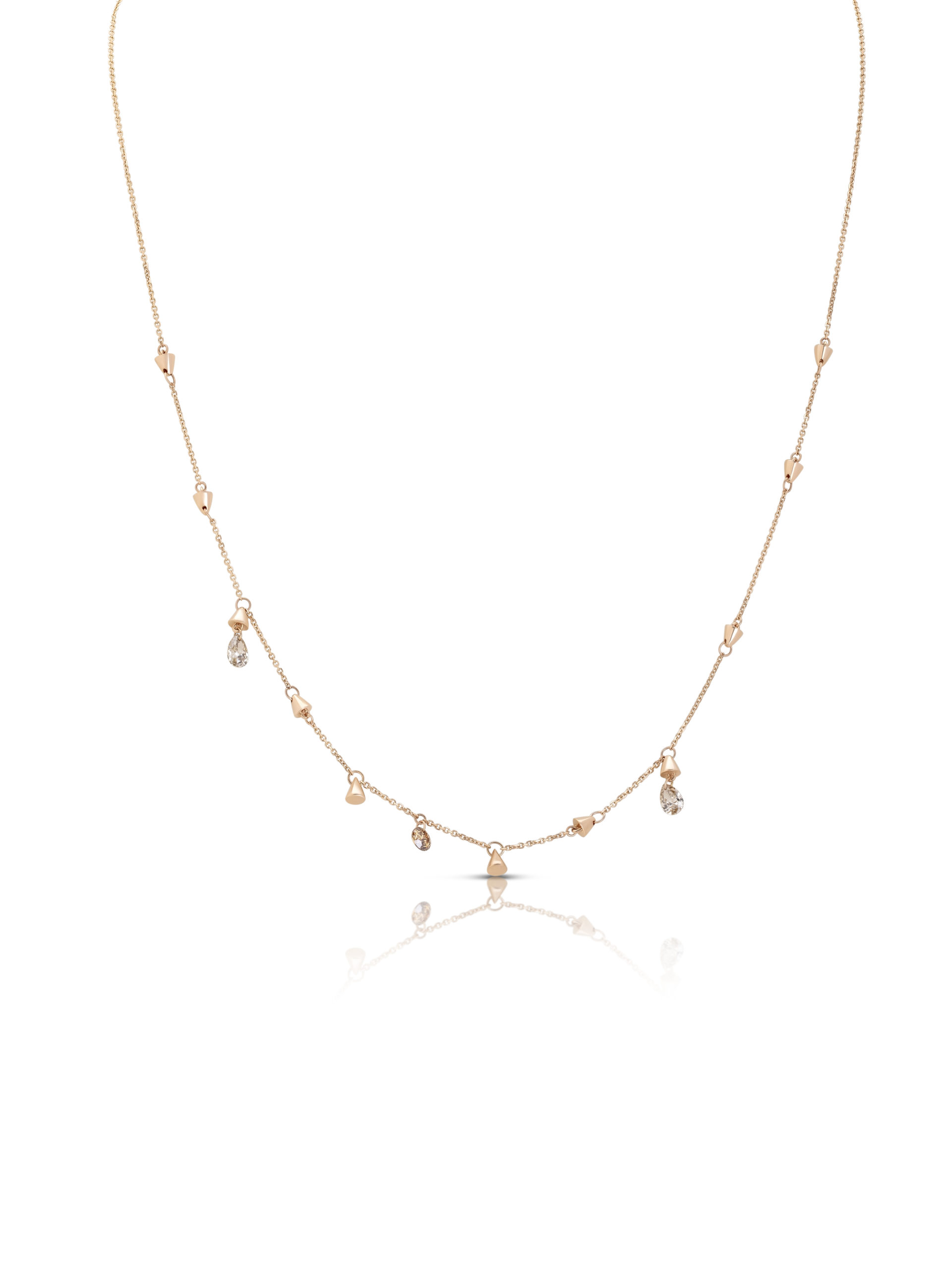 Collana in oro rosa 18KT gr 3 con diamanti brown naturali ct 0,15 e diamanti brown naturali taglio goccia ct 0,40 (0,20 punti). Disponibili in tutte le carature.