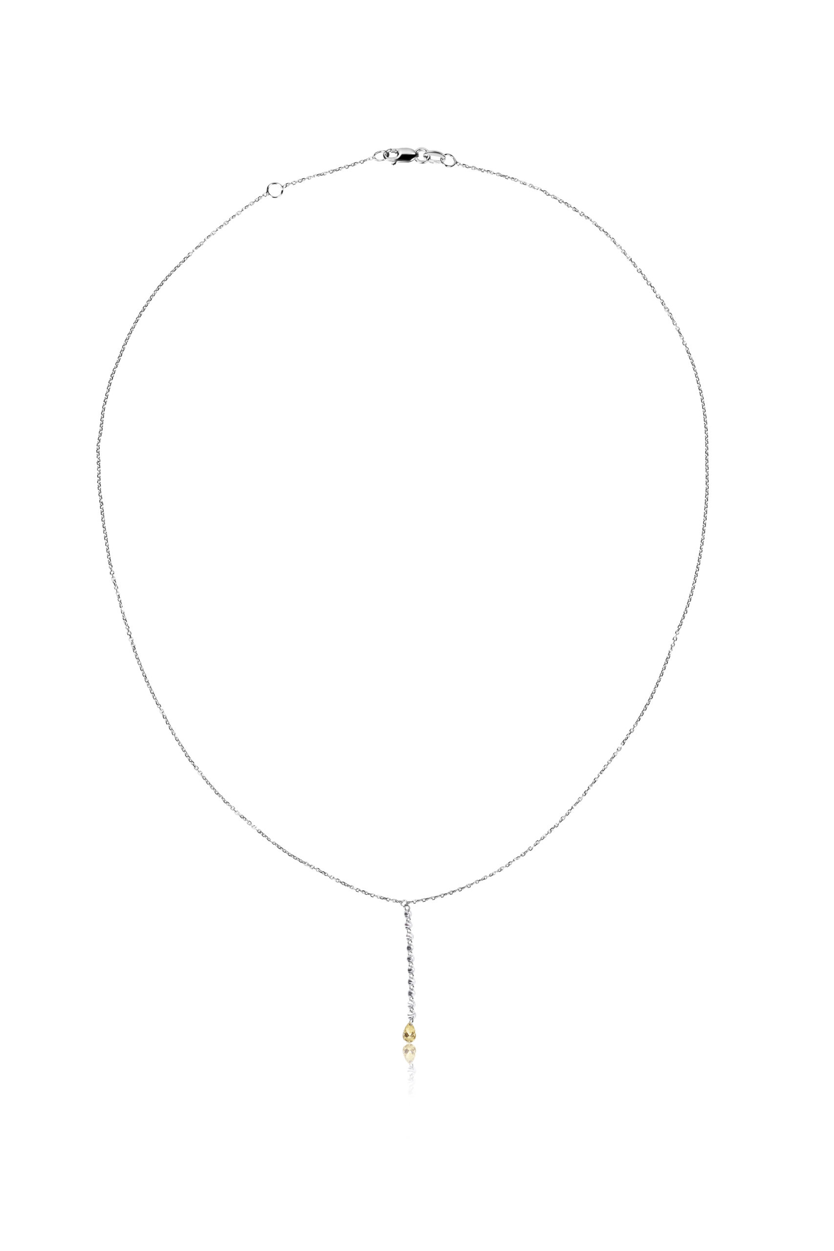 Collana in oro bianco 18KT gr 1,07 con diamanti naturali ct 0,25 (0,025 punti l'uno) e diamante fancy naturali taglio goccia ct 0,10.