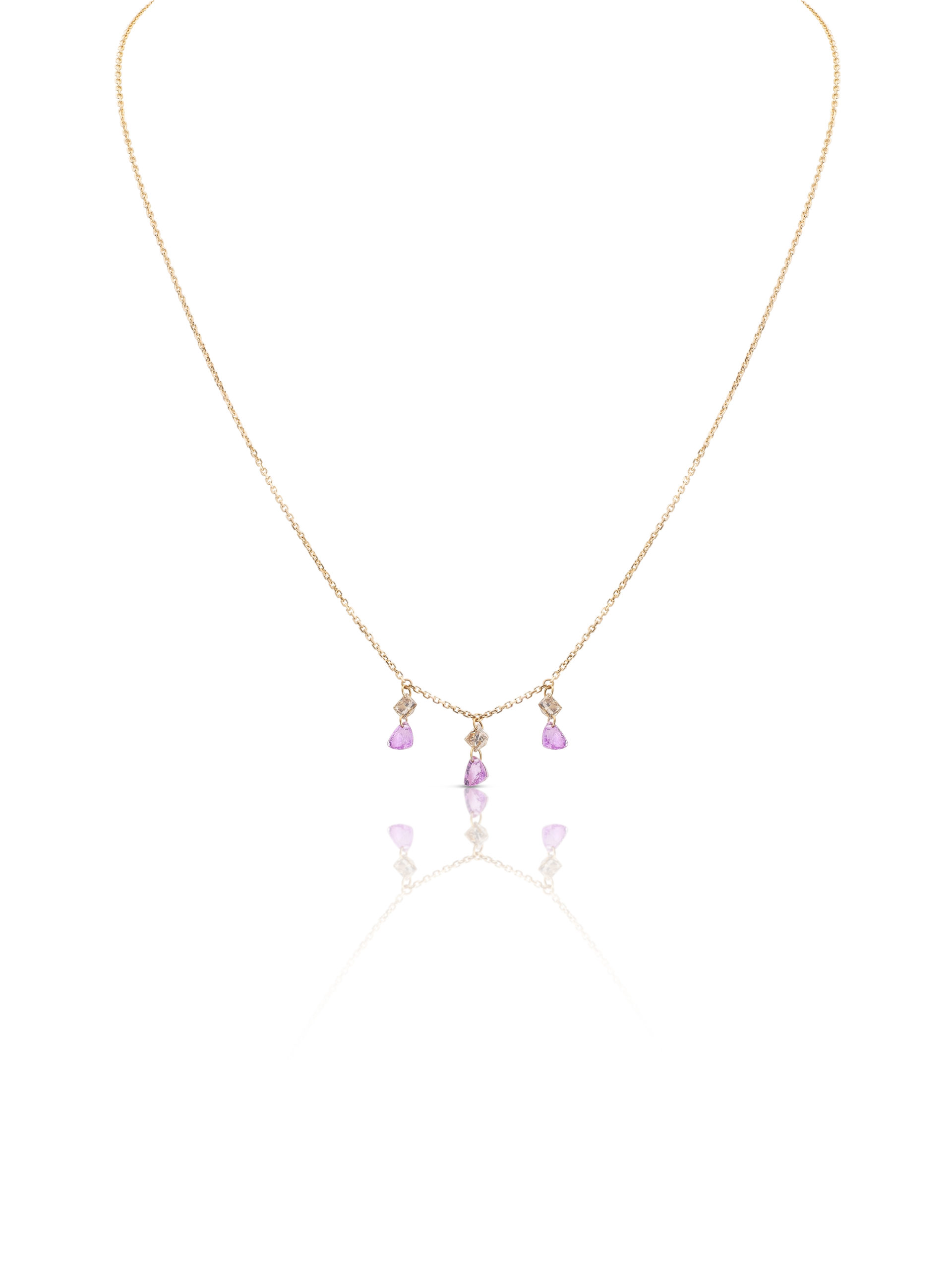 Collana in oro rosa 18KT gr 1,40 con diamanti brown naturali taglio princess ct 0,60 e zaffiri rosa naturali taglio triangolo ct 1,15