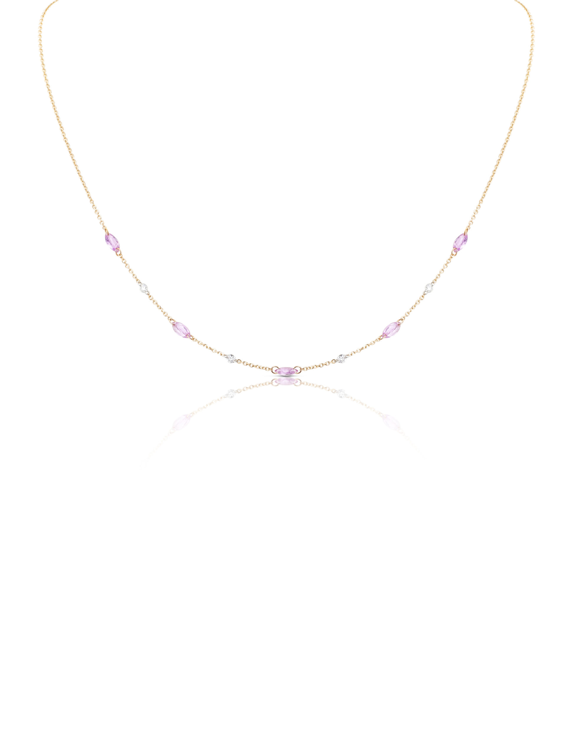 Collana in oro rosa 18KT gr 1,36 con diamanti naturali ct 0,20 e zaffiri rosa naturali taglio marquise ct 1,20