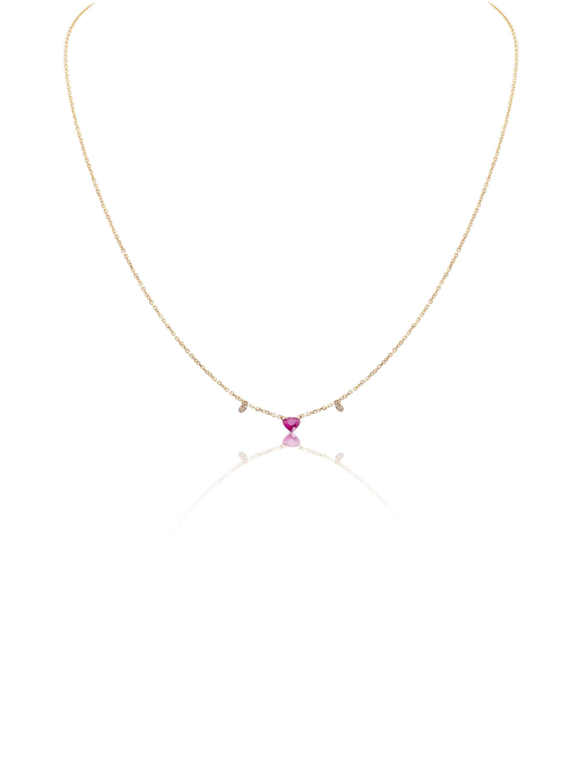 Collana in oro rosa 18KT gr 1,50 con diamanti brown naturali ct 0,10 e rubino naturale taglio cuore ct 0,33. Disponibile in tutte le carature.