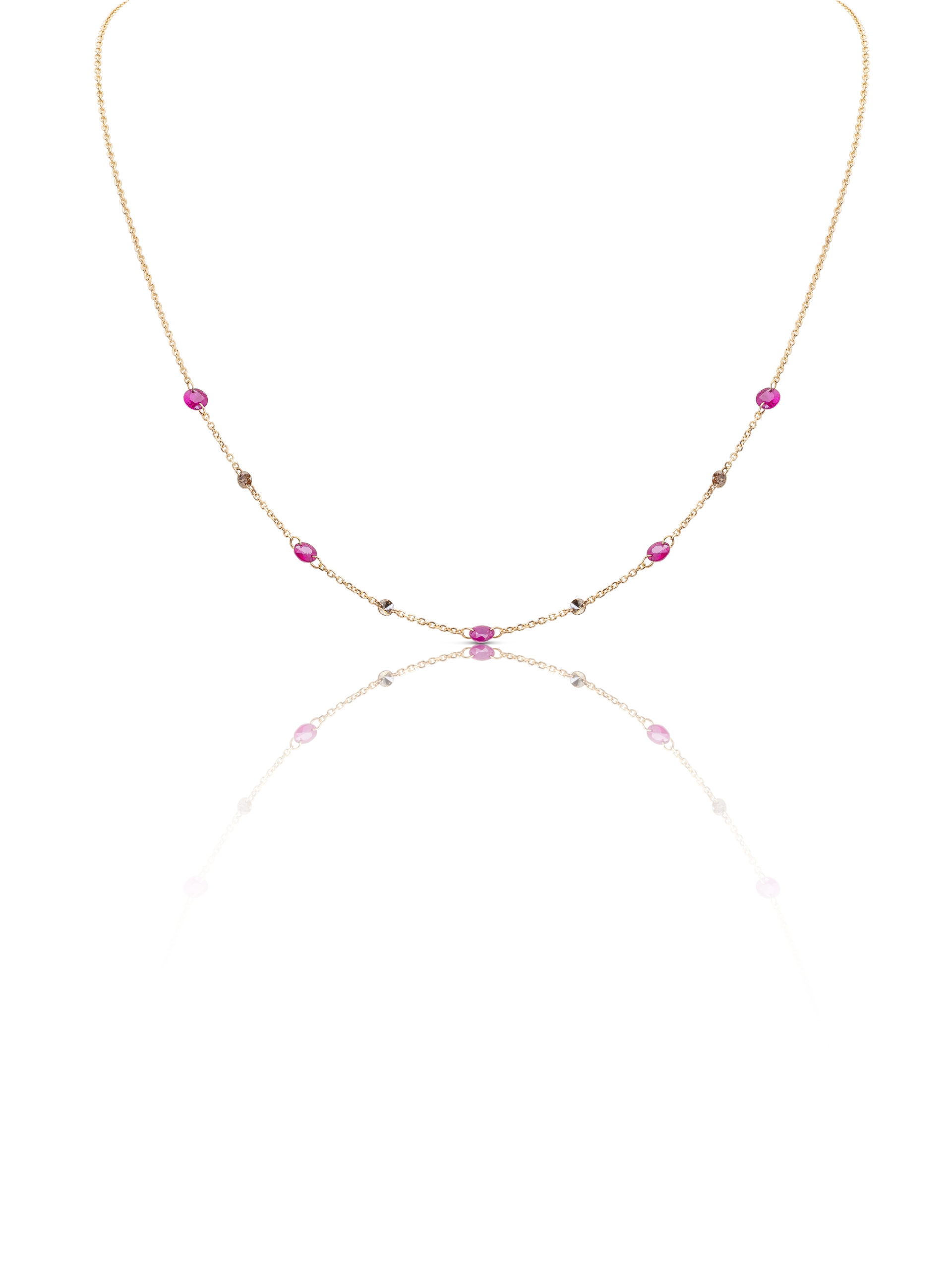 Collana in oro rosa 18KT gr 1,30 con zaffiro rosa naturale ct 0,20 e diamante brown naturale taglio goccia ct 0,36. Disponibile in tutte le carature.