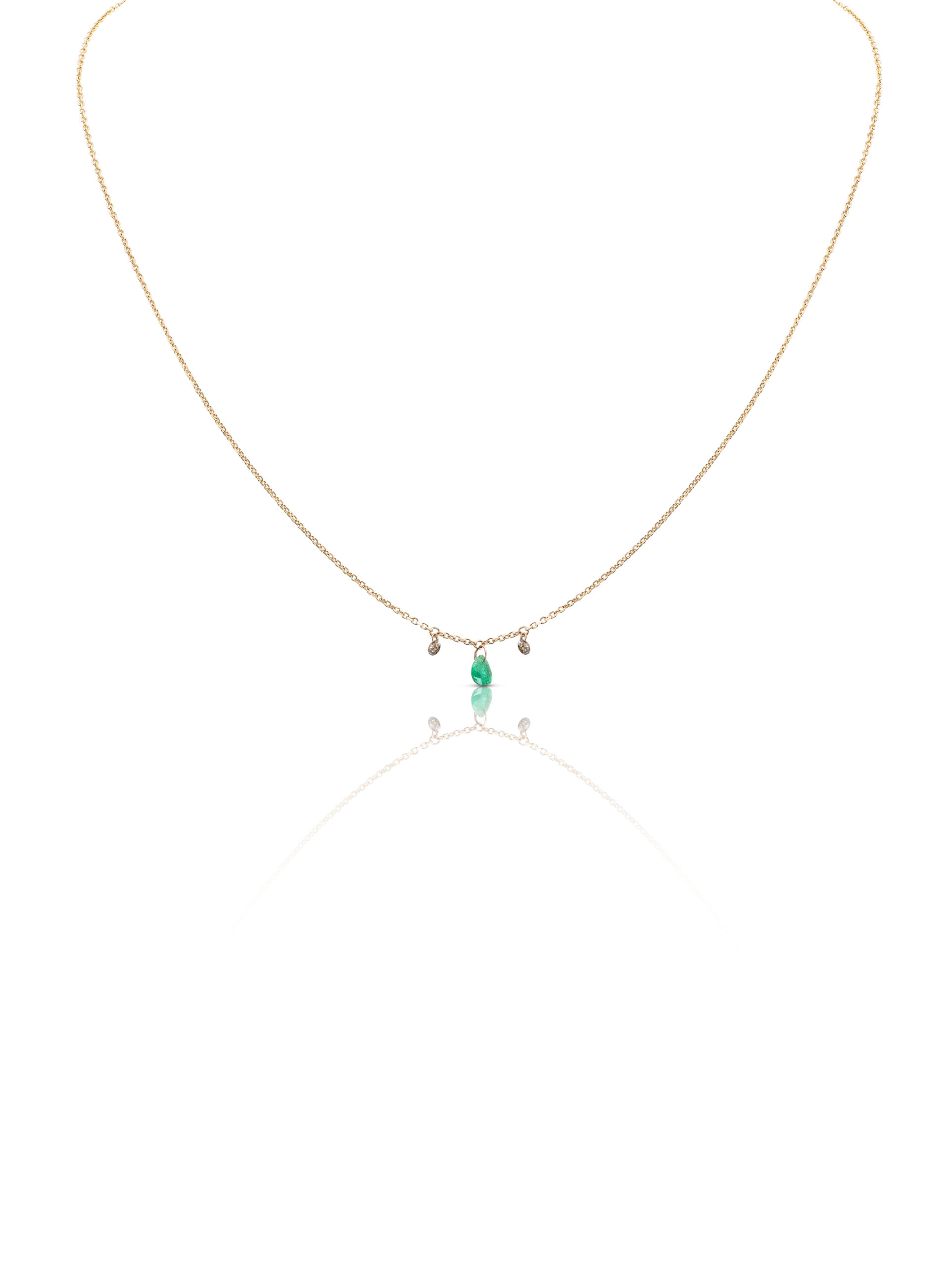 Necklace in 18KT rose gold gr 1.50 with natural brown diamonds ct 0.10 and natural emerald pear cut ct 0.24. Available in all carat weights.