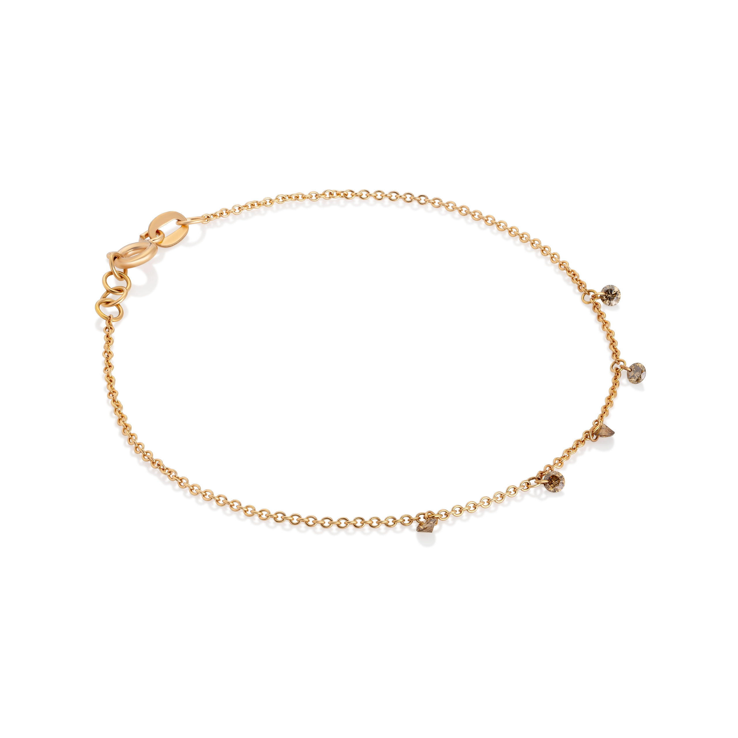Bracelet in 18KT rose gold gr 1,10 with 5 brown natural diamonds ct 0,25(0,05 points each ).Length 18 cm. Available in 0,15-0,20-0,30 .