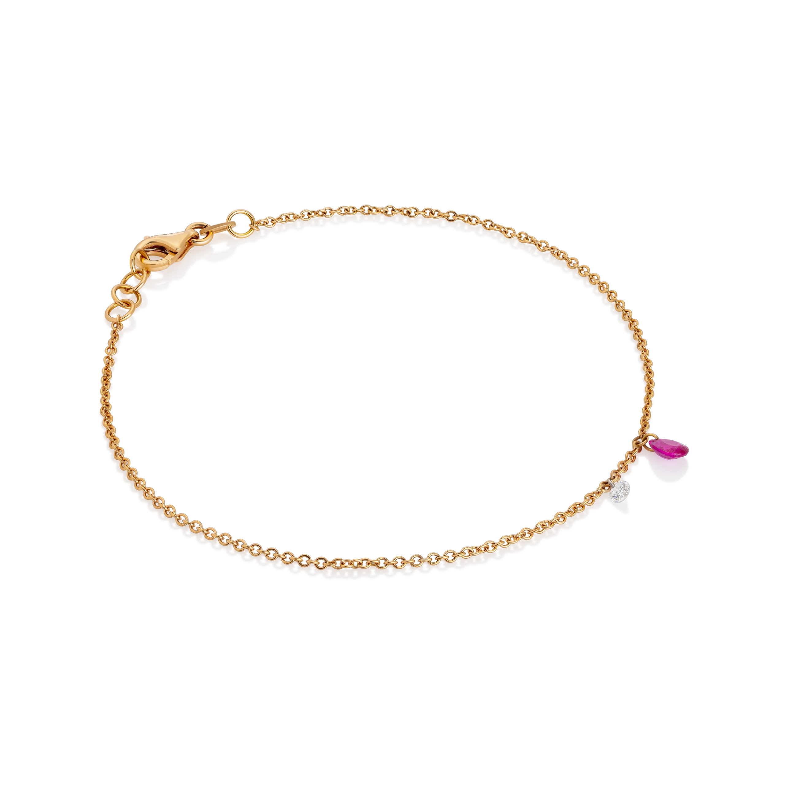 Bracelet in 18KT rose gold gr 1,20 with natural white diamond ct 0,05 Color F Purity SI and natural ruby pear cut ct 0,24.