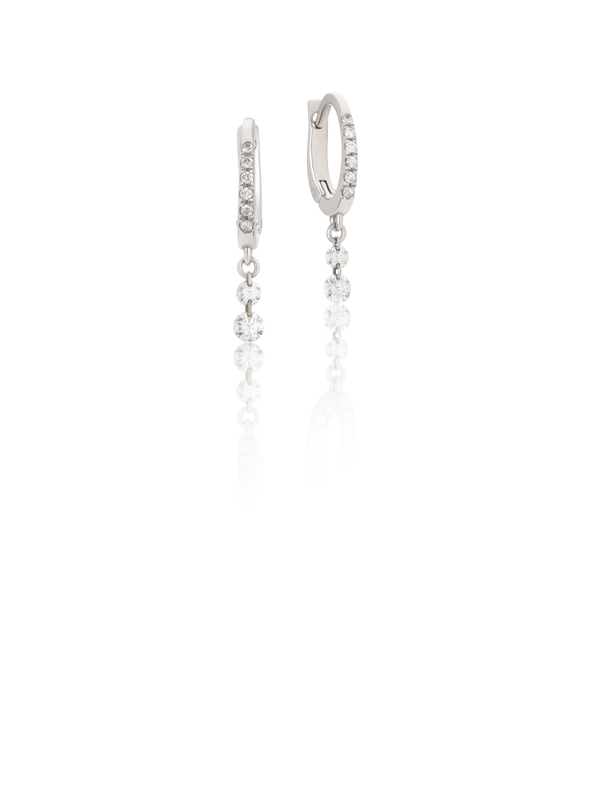 Earrings in 18KT white gold gr 2,00 with natural white diamonds ct 0,08 and ct 0,30 (2×0,05 and 2×0,10). Color F Purity SI. Available in all carat weights.