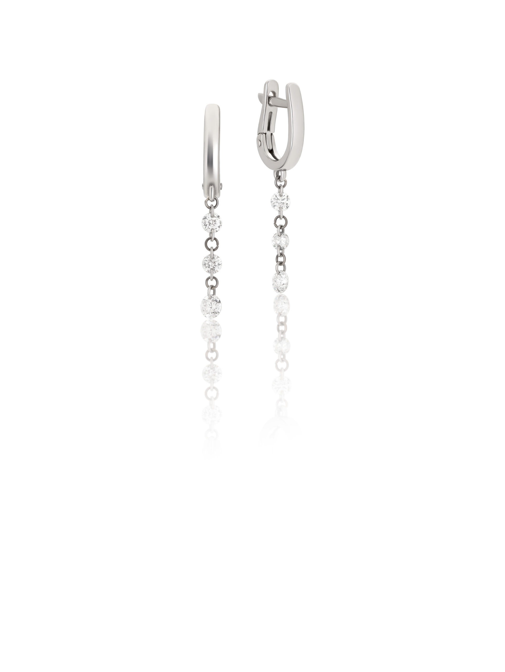 Earrings in 18KT white gold gr 1,80 with natural white diamonds ct 0,40 (4×0,05 + 2×0,10). Color F Purity SI. Available in all carat weights.
