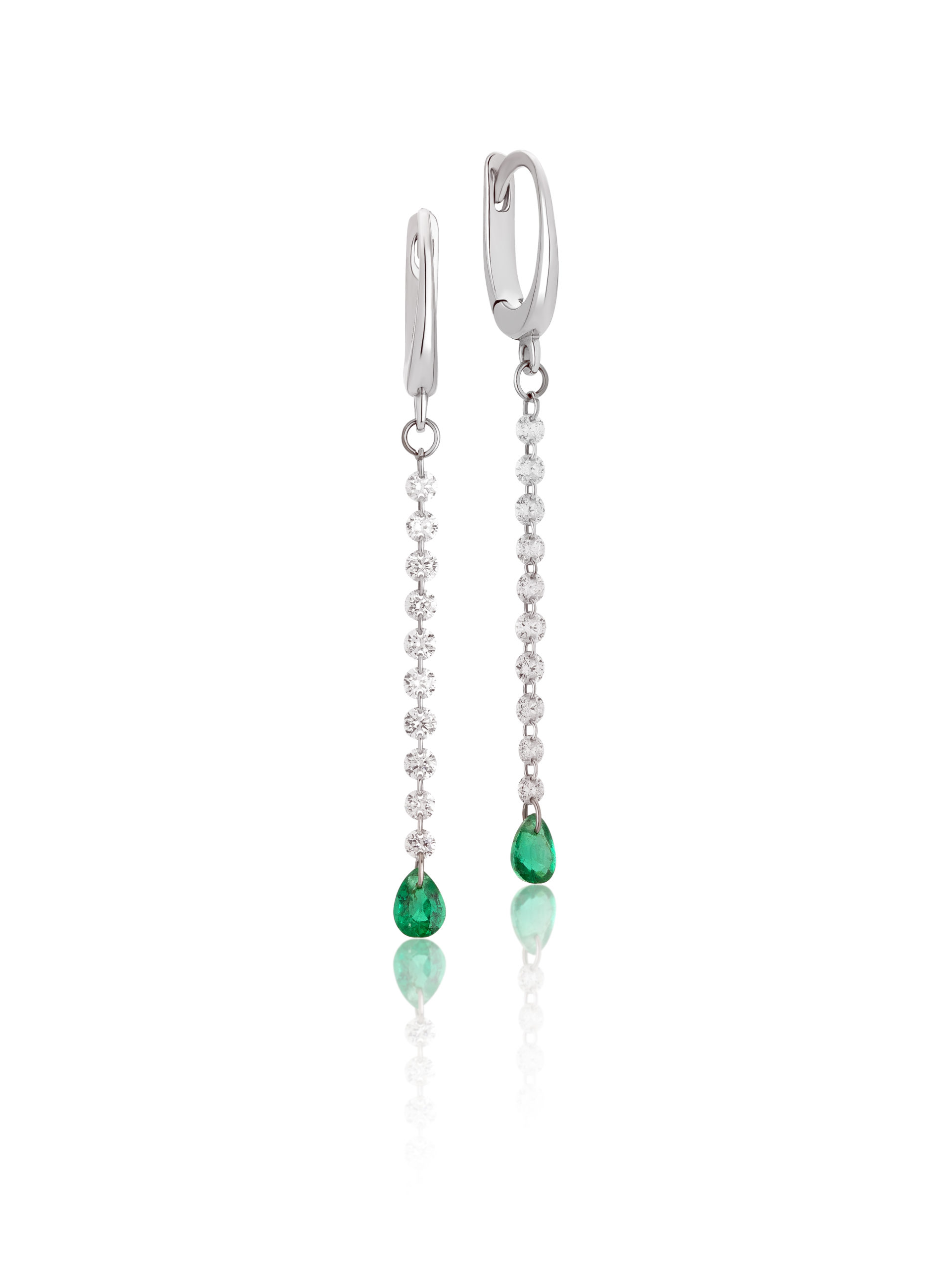 Earrings in 18KT white gold gr 1,62 with natural white diamonds ct 0,50 (0,025 points) Color F Purity SI and natural emeralds pear cut ct 0,33.