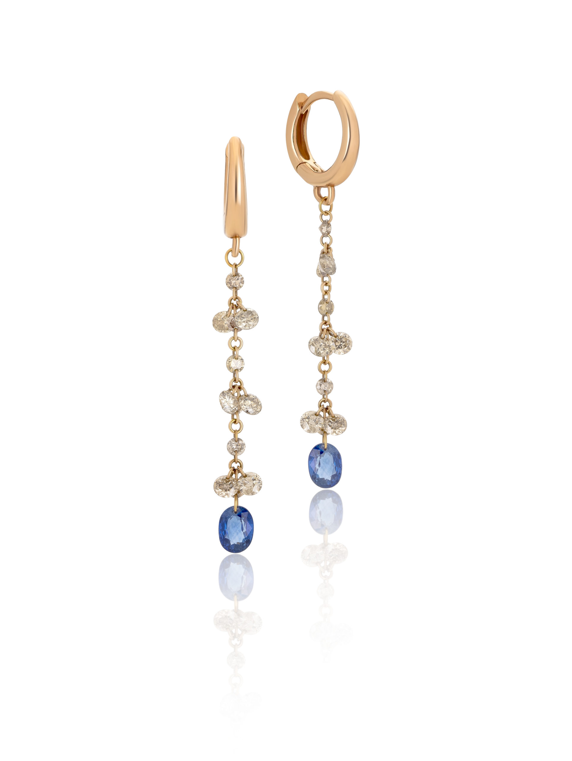 Earrings in 18KT rose gold gr 2,30 with brown natural diamonds ct 0,98 and natural blue sapphires oval cut ct 0,86.