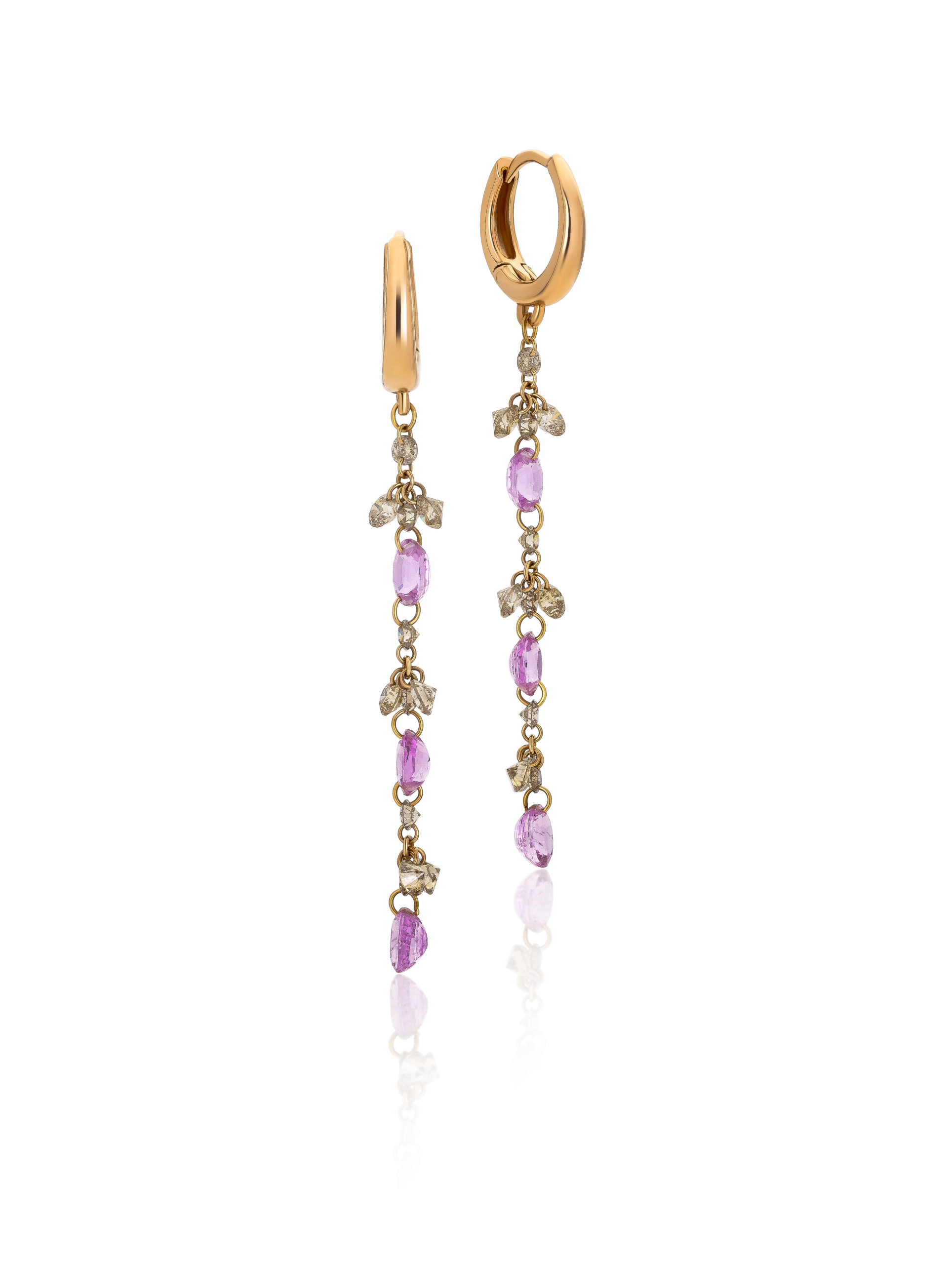 Earrings in 18KT rose gold gr 2,30 with natural brown diamonds ct 0,98 and natural pink sapphires oval cut ct 1,98.