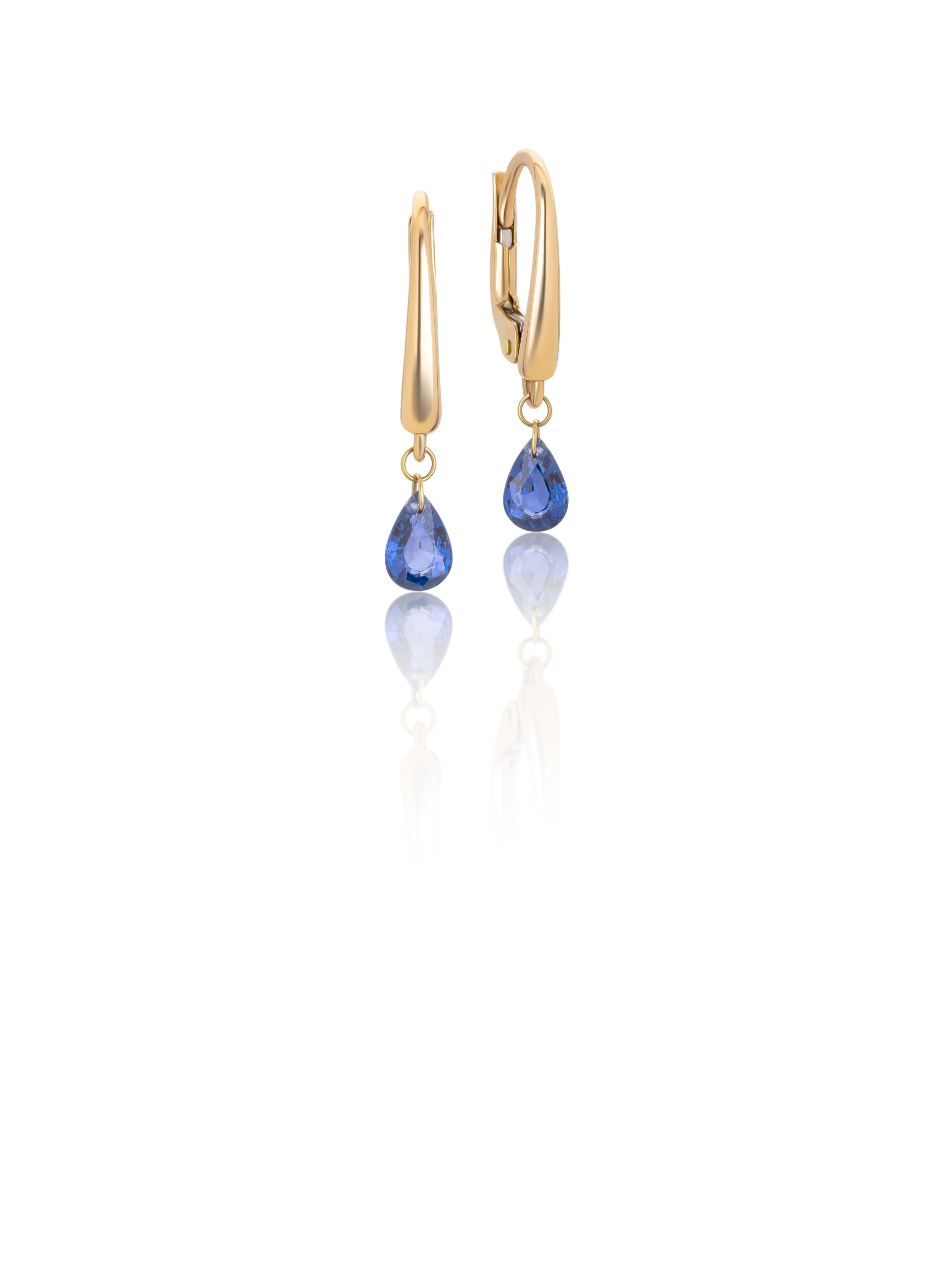 Earrings in 18KT rose gold gr 1,80 with natural blue sapphires pear cut ct 1,07.