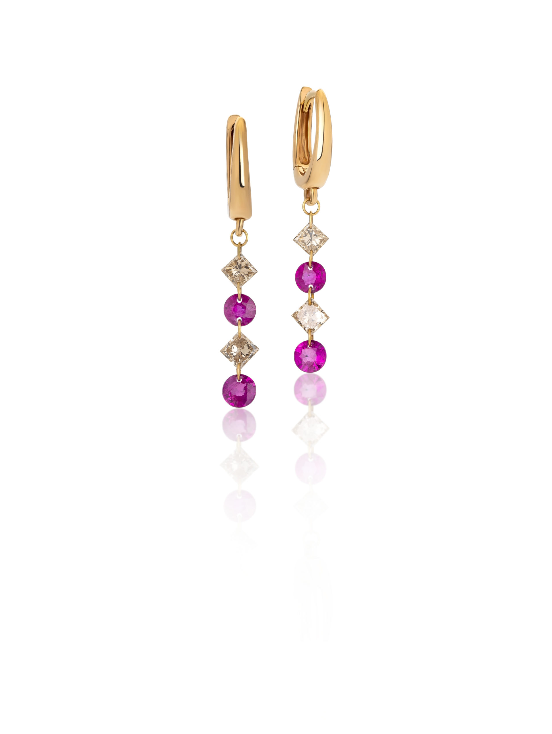 Earrings in 18KT rose gold gr 2,10 with natural brown diamonds princess cut ct 0,68 and natural round rubies ct 0,91.