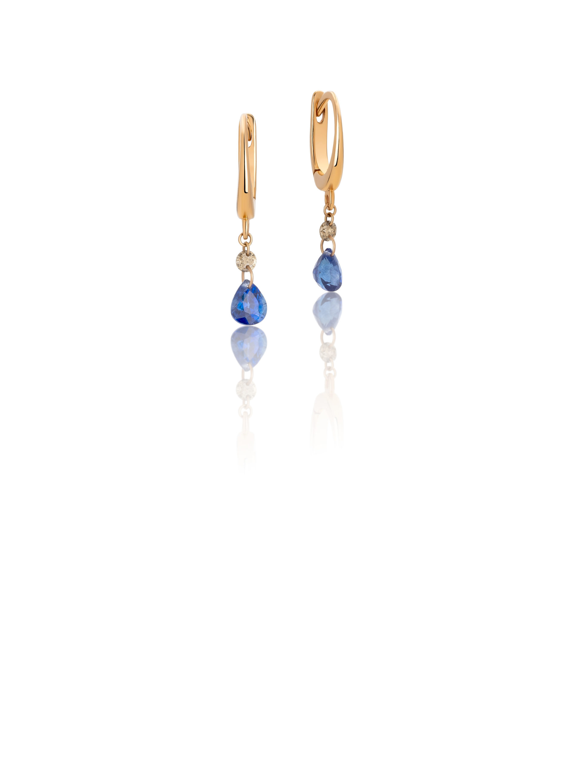 Earrings in 18KT rose golod gr 1,50 with brown natural brown diamonds ct 0,10 and natural blue sapphires pear cut ct 0,85.