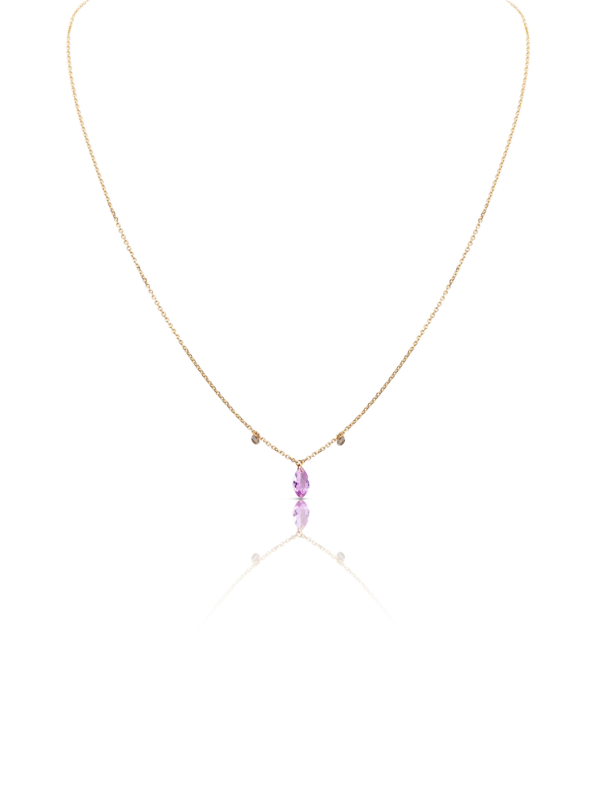 Necklace in 18KT rose gold gr 1.50 with natural brown diamonds ct 0.10 and natural pink sapphire marquise cut ct 0,61. Available in all caratures