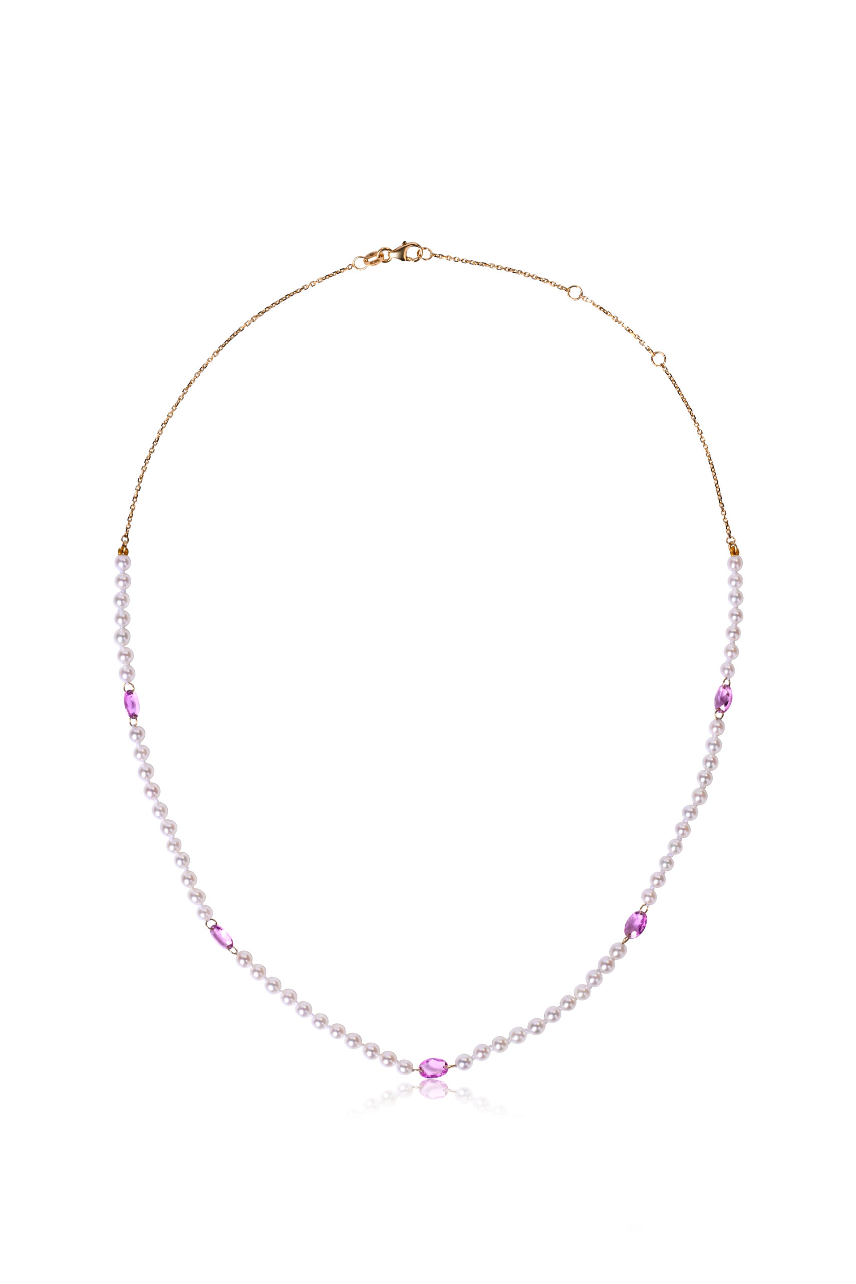 Necklace in 18KT yellow goldgr 1, with natural Japanese Akoya Pearls gr 3,48 (3-4mm) and natural pink sapphires oval cut ct 2,11.