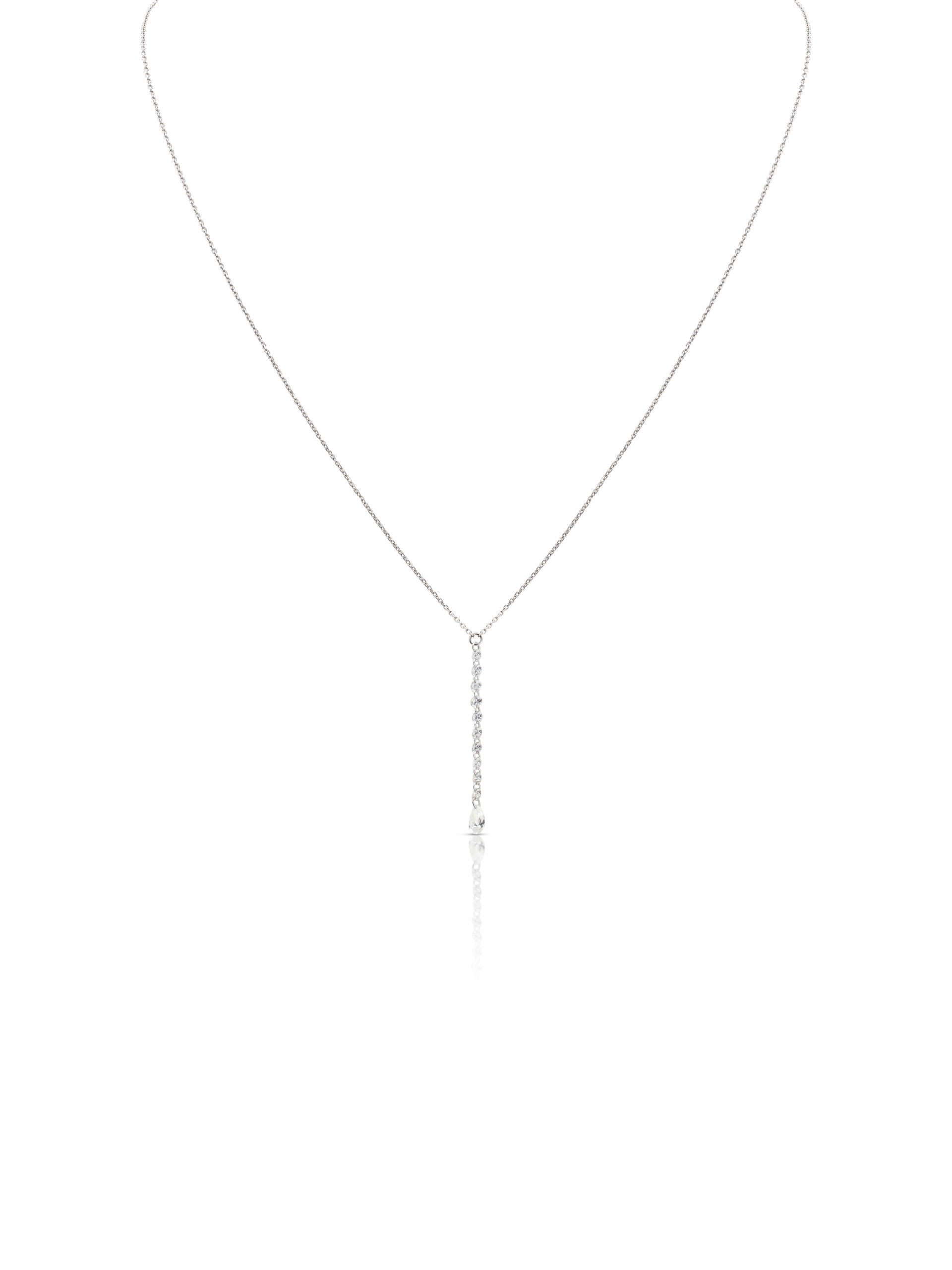 Necklace in18KT white gold gr 1.07 with natural white diamonds ct 0.25 (2.5 points each) and natural white diamonds pear cut ct .10. Color F Purity SI. Available in all carat weights