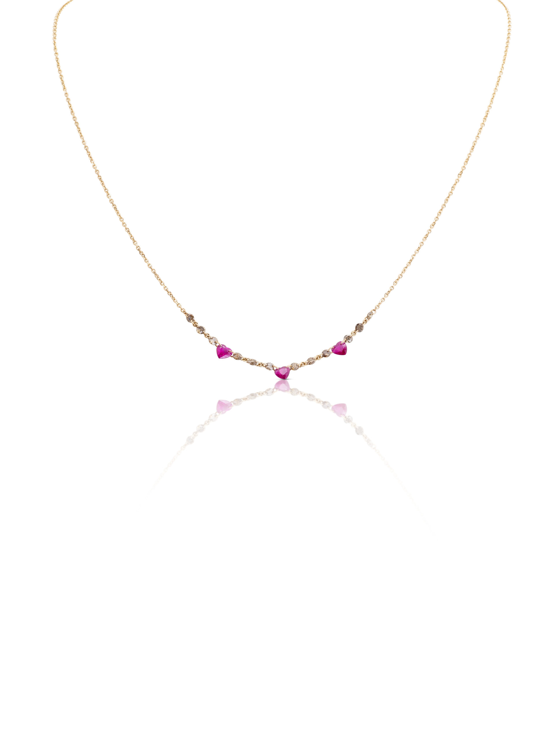 Necklace in 18KT rose gold gr 1.55, with natural brown diamonds ct 0,48 and natural rubies heart cut ct 0,77.