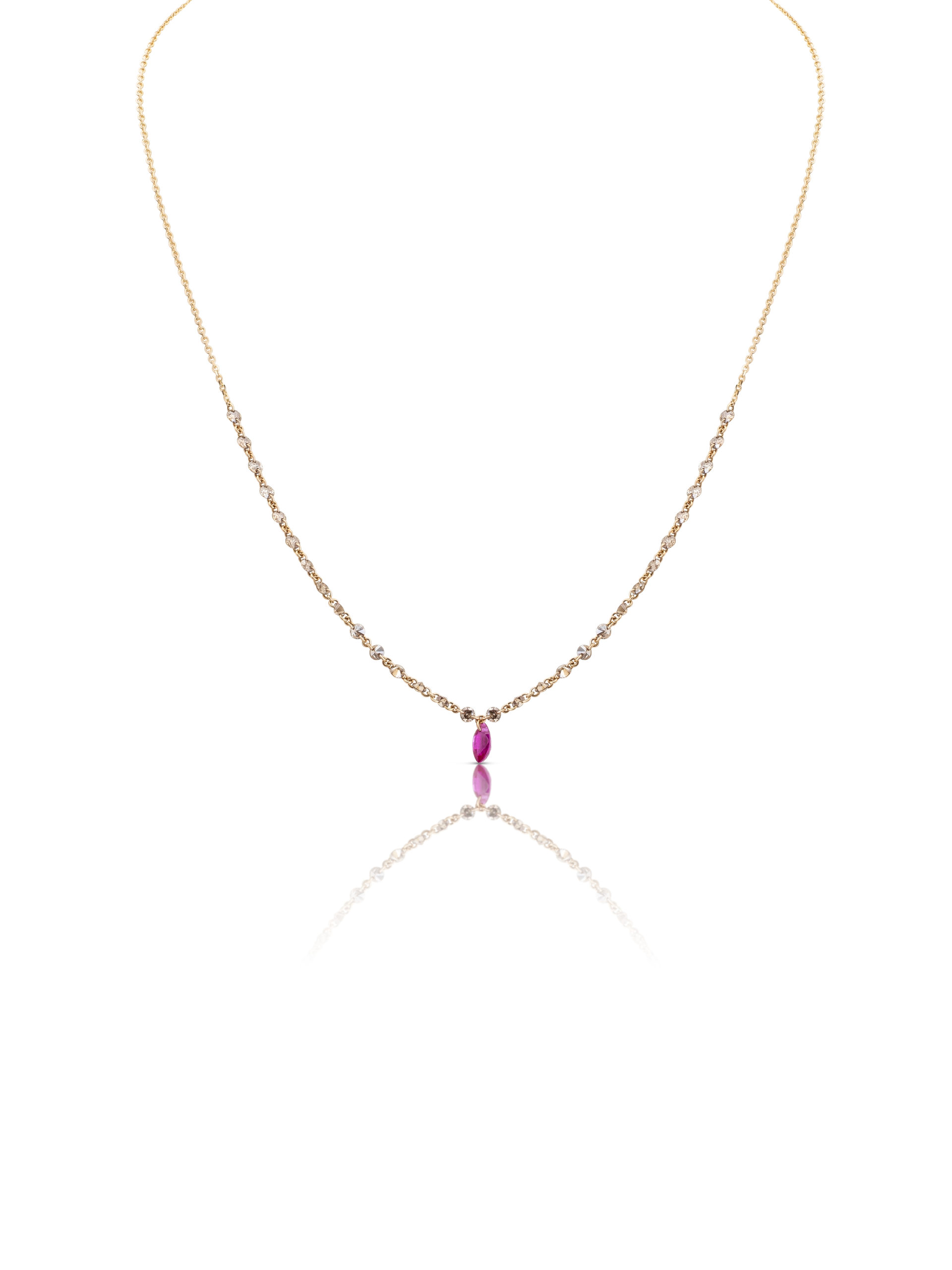 Necklace in 18KT rose gold gr 1.60 with natural brown diamonds ct 1,20 and natural ruby marquise cut ct 0,36.