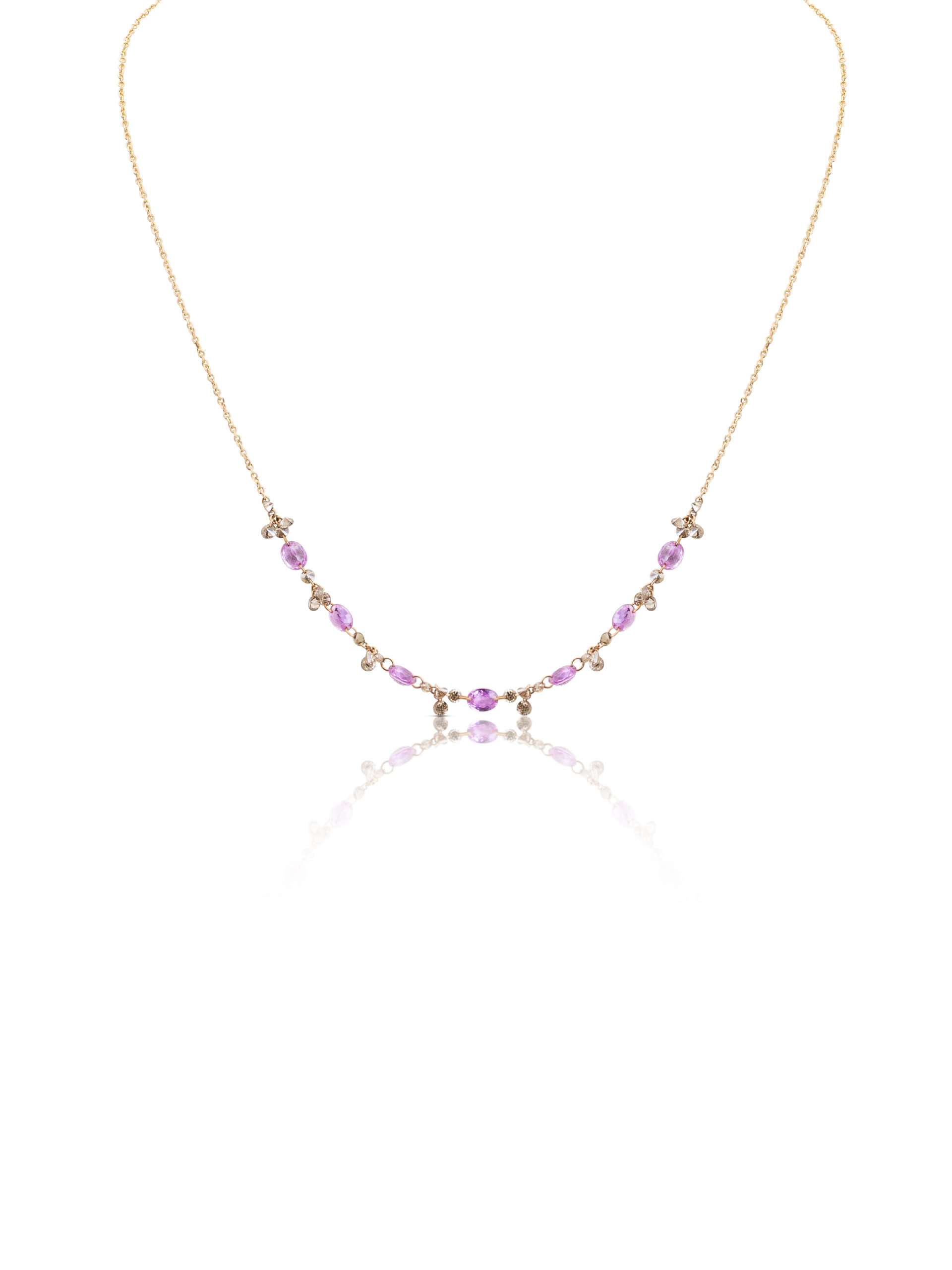 Necklace in 18KT rose gold gr 1.67 with natural brown diamonds ct 1.28 and natural pink sapphires oval cut ct 2.23.