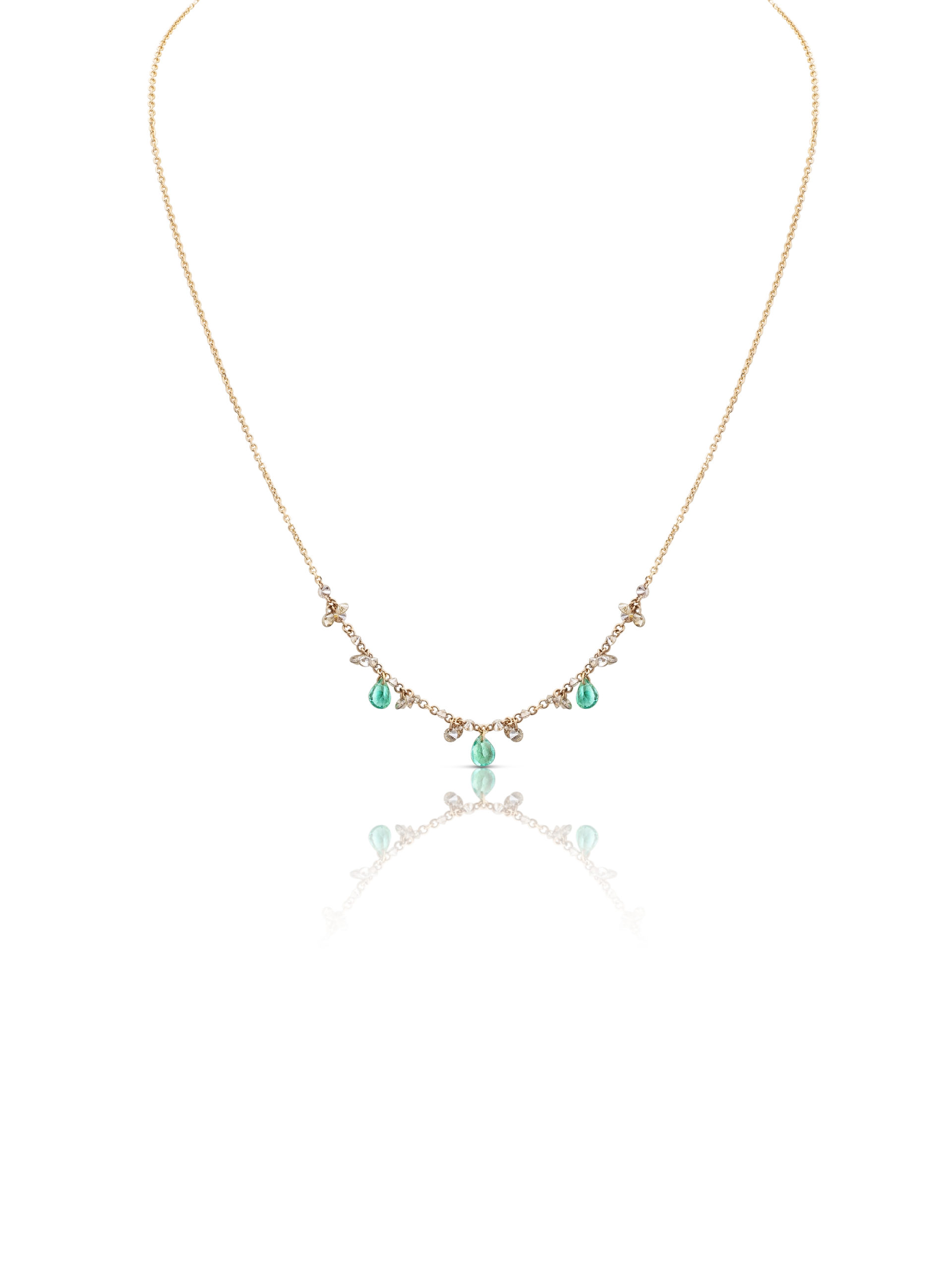 Necklace in 18KT rose gold gr 1.70 with natural brown diamonds ct 1.31 and natural emeralds pear cut ct 0.51