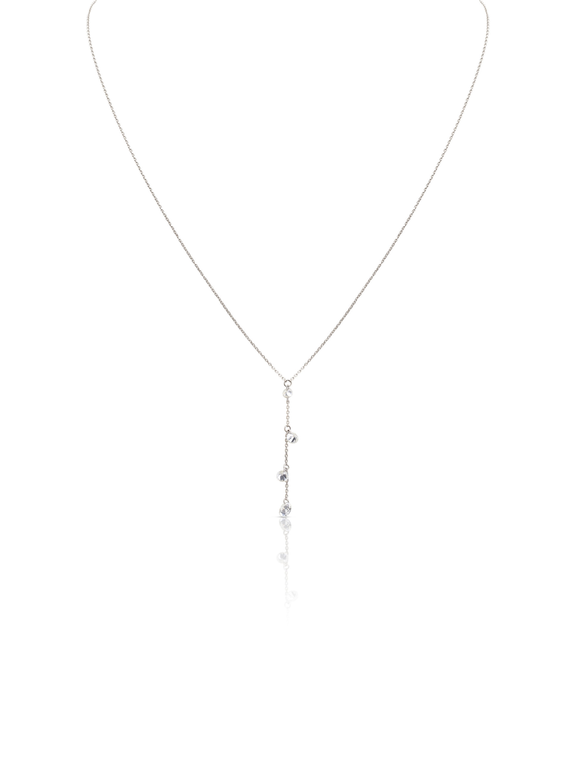 Necklace in 18KT white gold gr 1.10 with natural white diamonds ct 0.45 (0,05 / 2×0.10 / 0.20) . Color F Purity SI. Available in all carat weights.