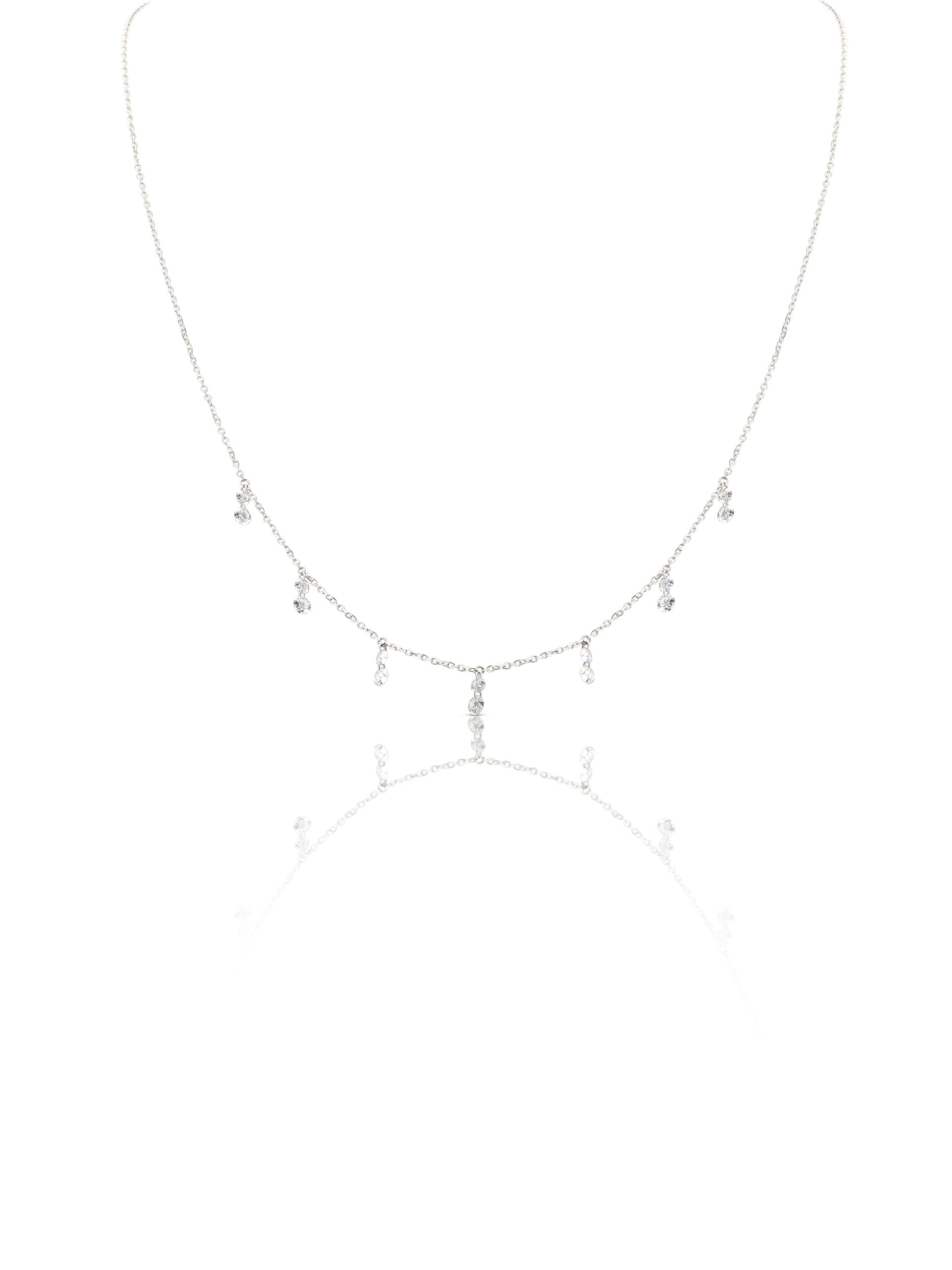 Necklace in 18KT white gold gr 1.30 with natural white diamonds ct 1.05 ( 7 diamonds 5 points each and 7 diamonds 10 points each ). Color F Purity SI. Available in all carat weights.